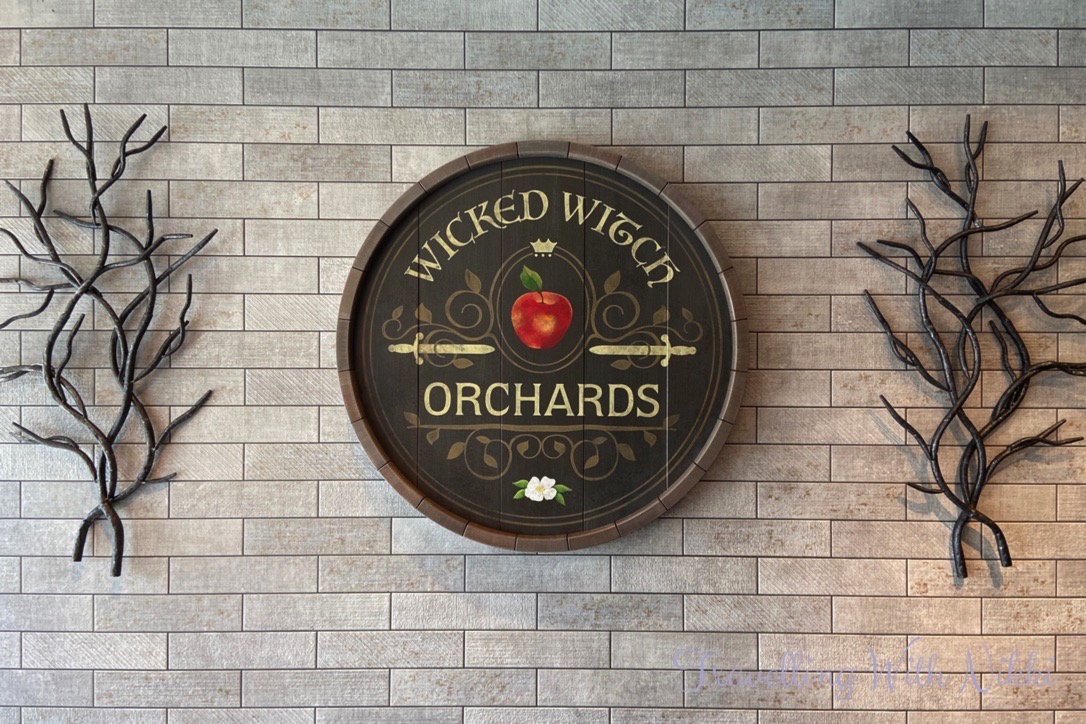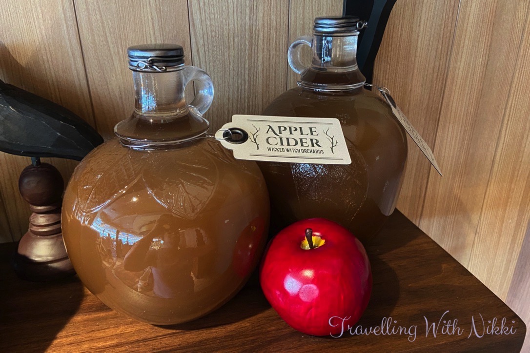 In the Snow White area you will find a large sign advertising Wicked Witch Orchards as well as lots of red apples, jars of apple butter and bottles of apple cider.