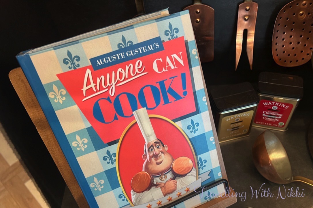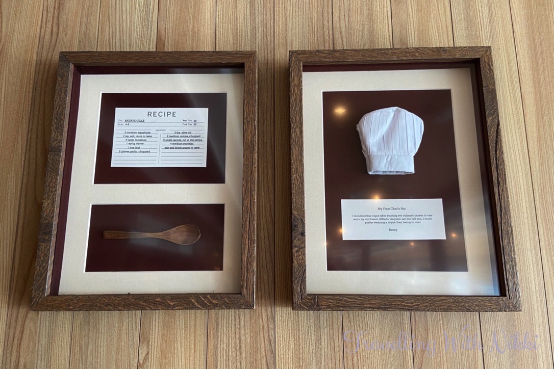 In the Ratatouille area you can find the Anyone Can Cook book by Chef Auguste Gusteau as well as Remy’s first chef’s hat, a recipe card for Ratatouille as well as the wooden spoon that Remy used to prepare and present the dish for the restaurant critic Anton Ego.