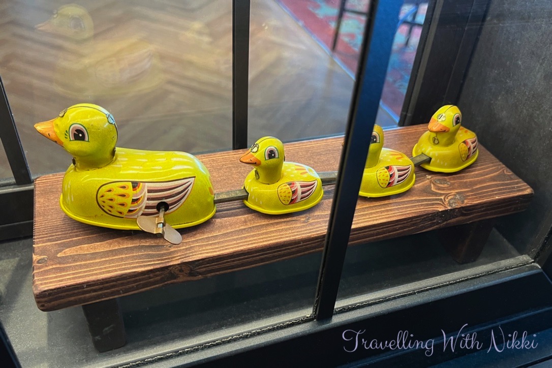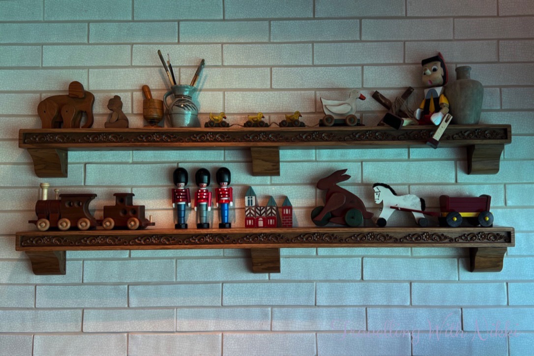 In the Pinocchio area there are lots of toys all handmade by Geppetto including wind-up ducks and a Pinocchio marionette as well as cuckoo clocks on the wall.