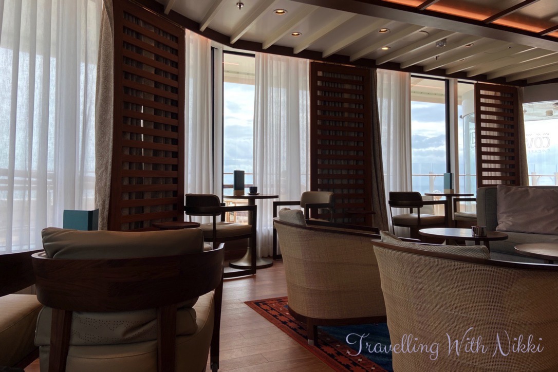 It was finally time for a much-needed coffee so we decided to go and sit in the beautiful air conditioning of a very quiet Cove Cafe. We were the only ones there (with the exception of Captain Andy running in to get a coffee as well) and I finally earned five stamps on my coffee card (you get a stamp each time you purchase a speciality tea or coffee onboard) which meant that I had a free coffee to get before we disembarked the next morning.