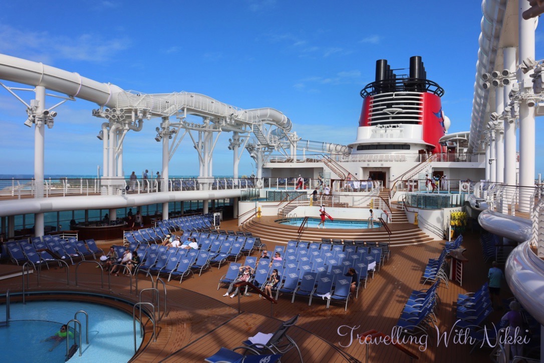 After leaving Cove Cafe and before getting some lunch, we walked around the top decks as I was really interested to see how busy the ship was as we were docked at Castaway Cay. There was just over twenty people sat by the main pools, a few more people getting food at Mickey and Friends Festival of Foods and we also saw a group of people doing the Walking the Wish tour so we were definitely not the only ones still onboard the ship.