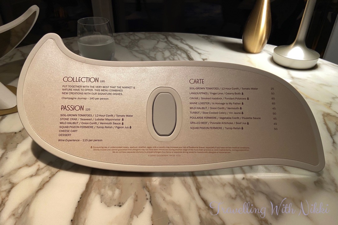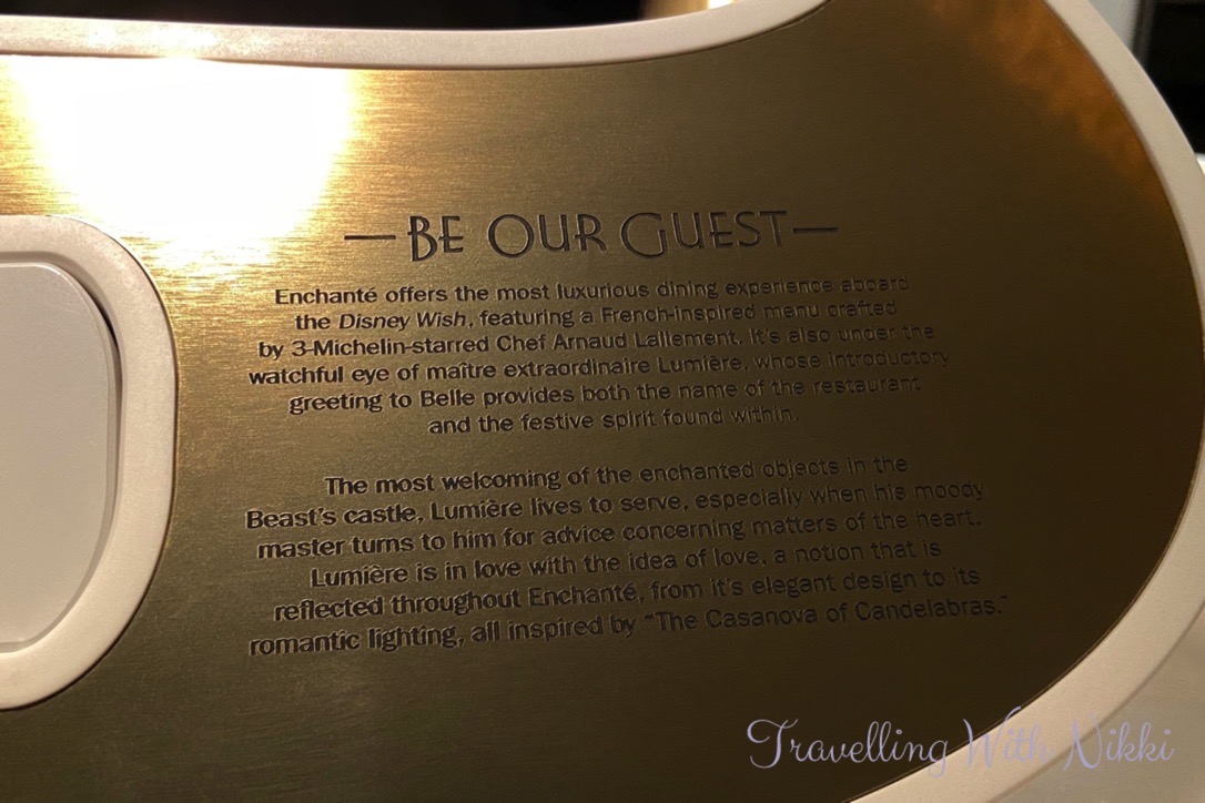 If you enjoy carefully prepared and impeccably presented food served in a wonderful atmosphere with incredible service, ambiance, detail and the experience of a three Michelin-starred menu, then like us, you will absolutely love it. This is something that both of us enjoy and look forward to whenever we travel so for us, it was definitely worth it. If you were to dine at L’Assisette Champenoise or another three Michelin-starred restaurant on land it would cost a lot more so dining at Enchanté by Chef Arnaud Lallement onboard the Disney Wish is incredible value.