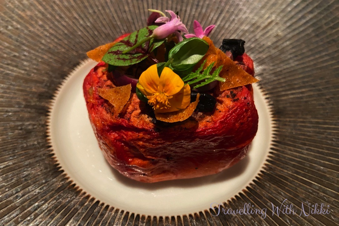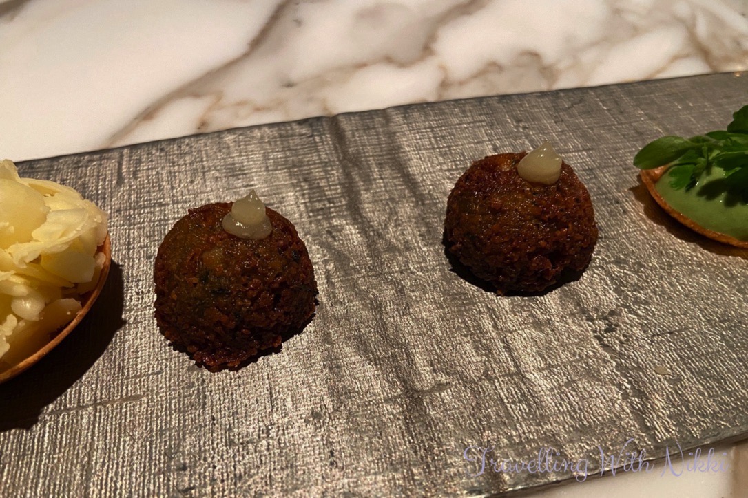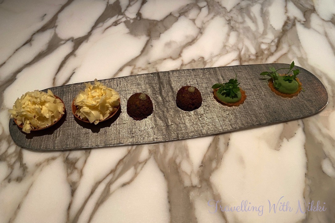 To begin our meal Anthony brought out a plate of beautiful canapés which consisted of a Comté cheese tartlet with a cauliflower vinaigrette, a herb and yogurt tartlet as well as a falafel with a lemon drop on top. We ate each of them in that order (which Anthony suggested to us) and each one was delicious but my absolute favourite was the falafel which had a light crunch on the outside and yet was so light and fluffy and still warm on the inside. All of the canapés were so perfect and a wonderful glimpse of what was still to come.