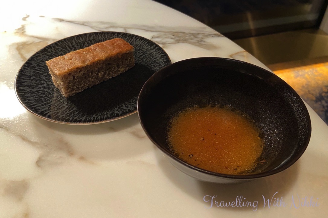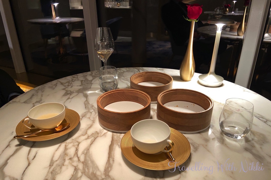 After finishing our canapés, the menu for the evening was brought out and placed on the stand that was on the table in front of each of us. There are three different options you can choose from – the nine course Collection menu, the five course Passion menu as well as items that you can order à la carte.
