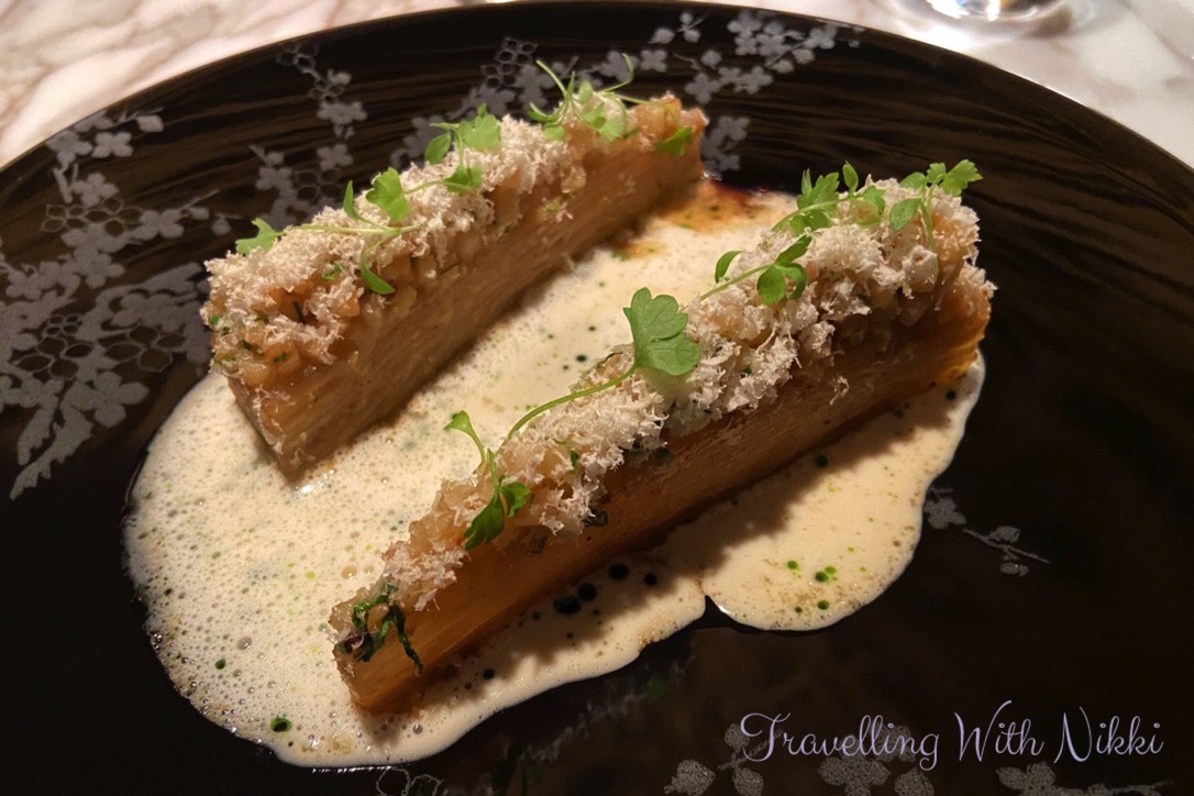 The following course that was served to me was “Celeri” which was celery served with chestnut shavings and a vermouth sauce. The only issue was that I absolutely hate celery with a passion and avoid it at all costs. However in the last year I have tried other foods that I have never liked before (such as tuna, avocado and salmon) which I now cannot get enough of so I was willing to keep an open mind and to at least try it.