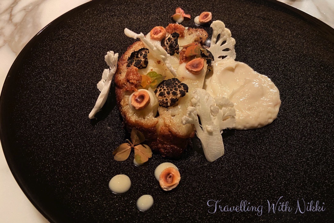 My final dinner course was “Cauliflower” which was roasted in Lebanese spices and served with cauliflower puree and a Barolo vinegar. It was so mouthwateringly good and was cooked perfectly and was my favourite course of the evening.