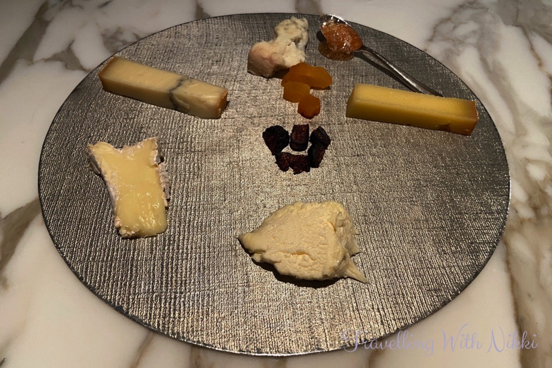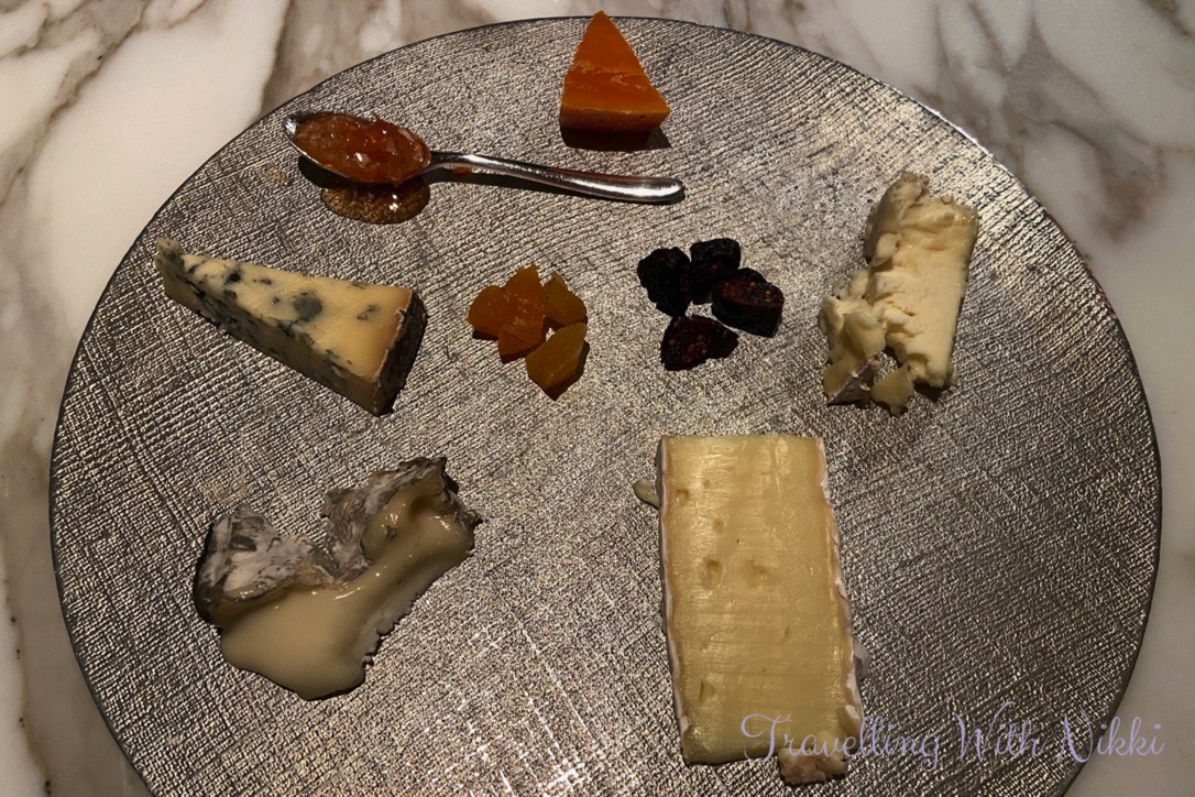 After several courses of incredible food, the cheese trolley arrived at our table. Both of us love cheese and we were served a selection of every cheese they had to offer along with dried fruit and honey. We both tried each cheese at the same time and then spent a few minutes discussing the different flavours and what we liked about each one. As suggested we finished with the strongest cheese last which was a Roquefort that tasted heavenly.