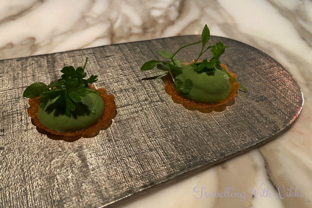 We were also introduced to Anthony who was our incredible server for the evening who suggested a glass of champagne to begin our dining experience which sounded a perfect idea. Luis the wonderful sommelier at Enchanté explained all the champagnes that were available (as well as the price for each one) and I chose a glass of the Tattinger Brut Prestige Rosé and we also ordered a bottle of the Hilden sparkling water.