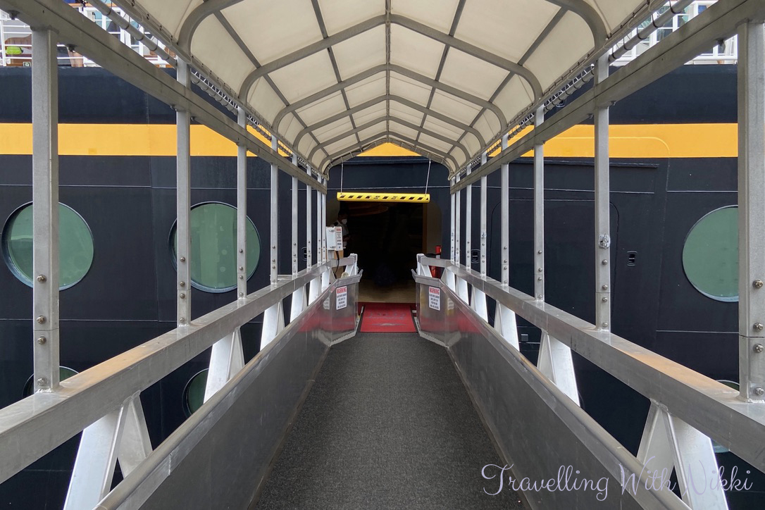 There is definitely something special about Disney music as “Almost There” from Princess and the Frog was playing as we headed up the escalator from the check-in area to the gangway which again was very apt and such perfect timing. It had only taken just over forty minutes (including the wait for our test results) from arriving at the terminal to reaching the gangway for the ship which was simply incredible.