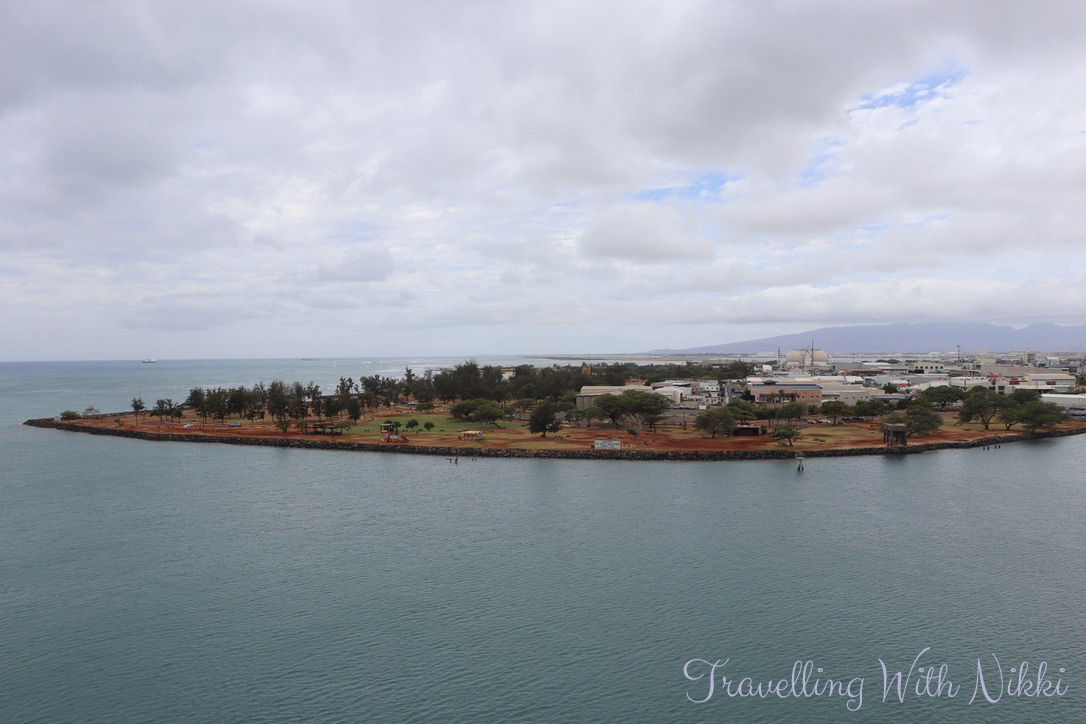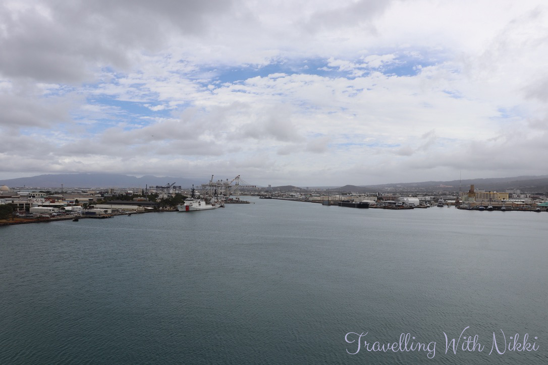 It was a quick thirty minute drive with hardly any traffic back to Daniel K Inouye International Airport where we dropped our car off back at Alamo. Renting a car in Hawaii is definitely the way to go as it is so convenient and it made our lives incredibly easy not only in Oahu but also on our port days on the other islands as well. We were in a taxi just after 11:00am and there were plenty of them available right outside the terminal building and they also had lots of luggage space in them as we had several large suitcases with us making the short journey to the port very easy.