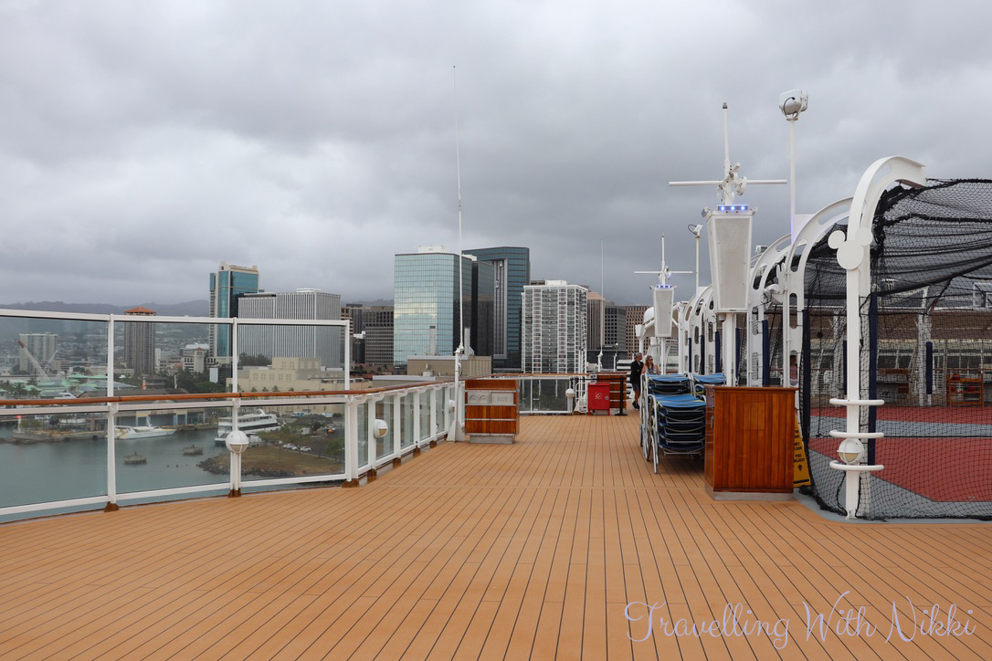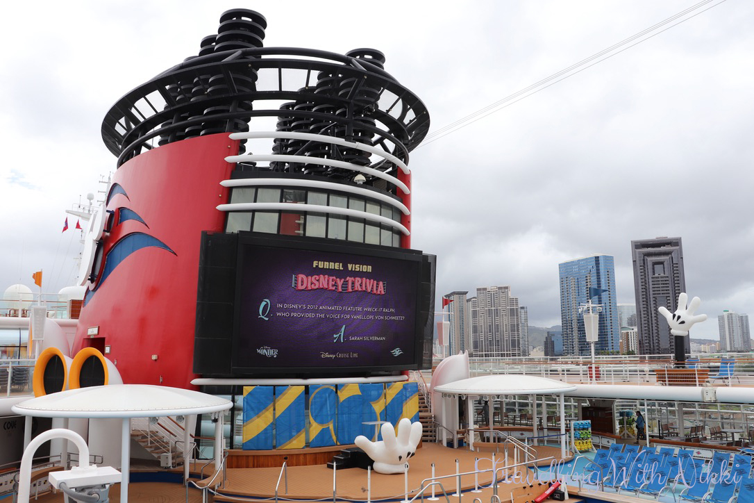 Our Cruise Director Lee arrived on the Deck 9 stage to begin the countdown to the start of our long awaited Hawaiian cruise from Honolulu to Vancouver and before we knew it, we finally heard the “When You Wish Upon a Star” ship horn.