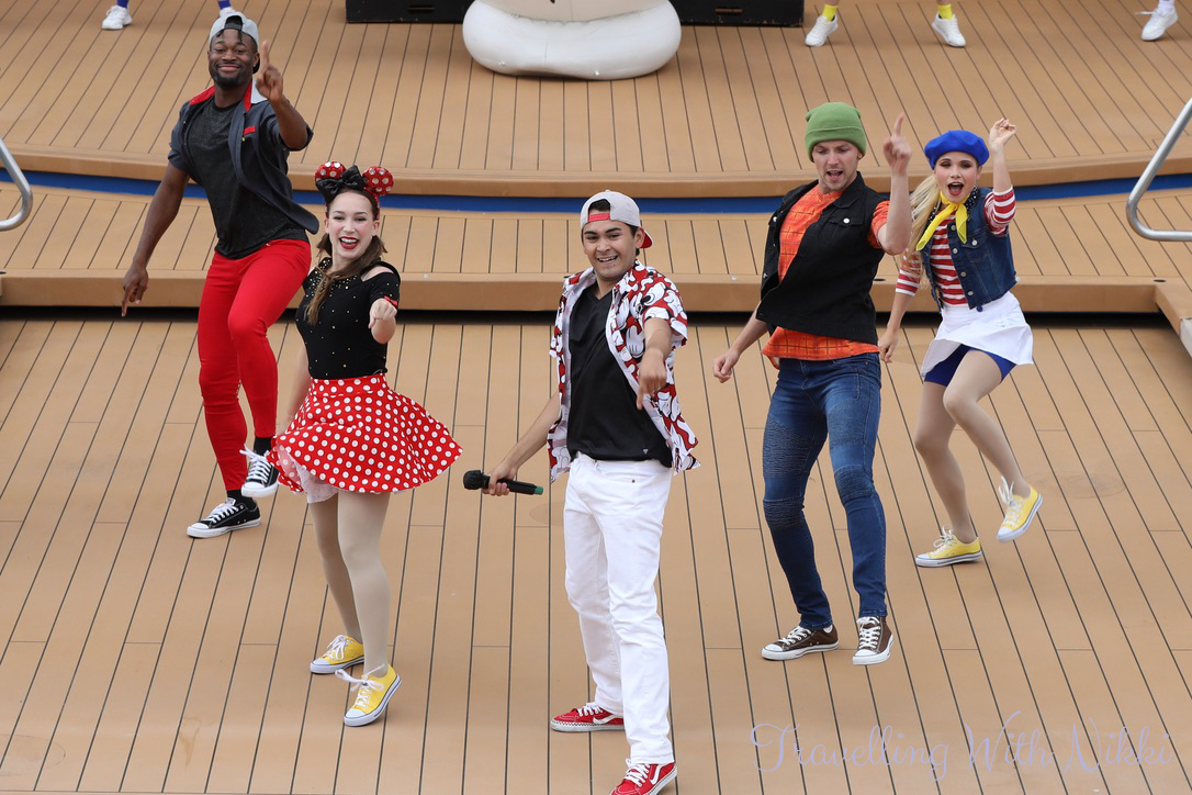 Then it was time to “Sail-A-Wave” your hands in the air every time you heard the words “Disney Wonder”. I had heard this next piece of music so many times before as it is/was used in the We Love Mickey show at Hong Kong Disneyland. Despite both the wind and the misty rain in the air that continued throughout the entire Mickey’s Sail-A-Wave Party, I could not stop smiling the whole time.