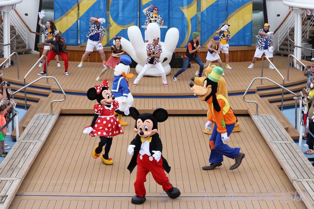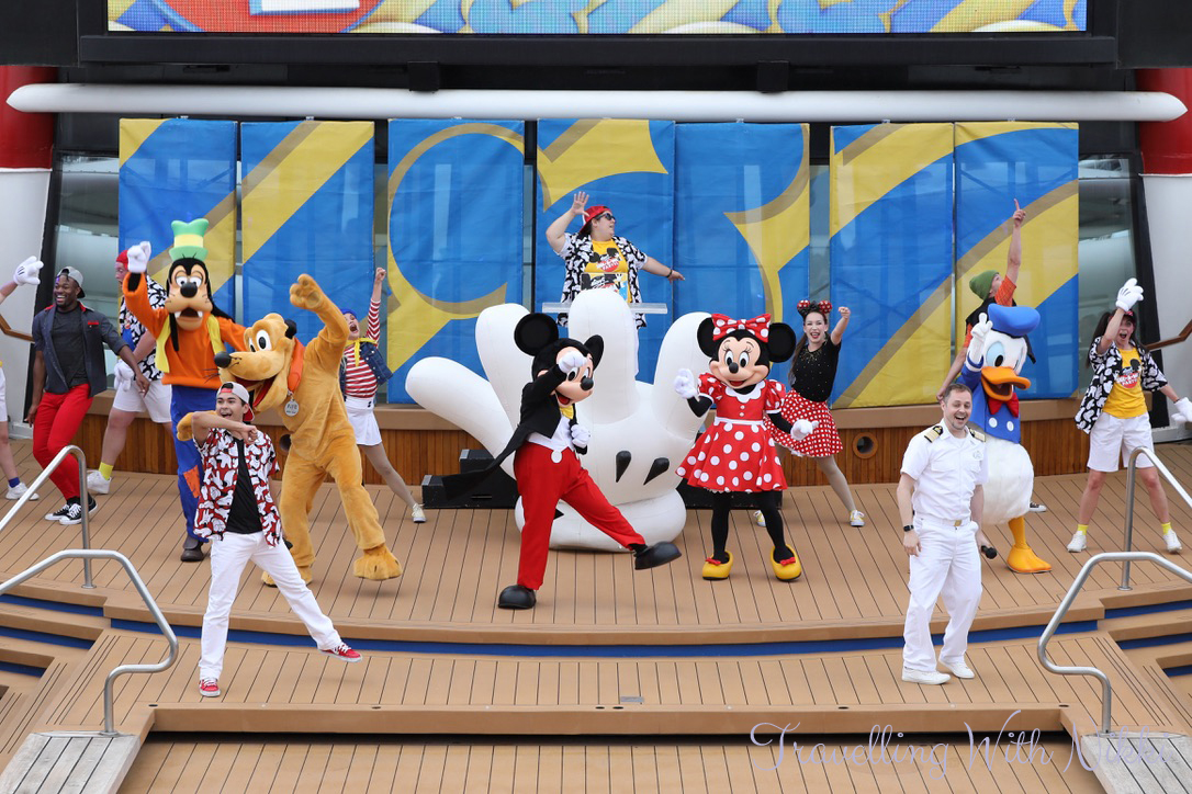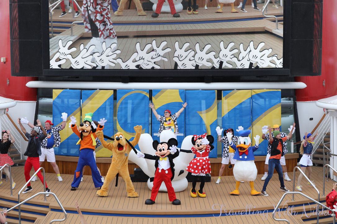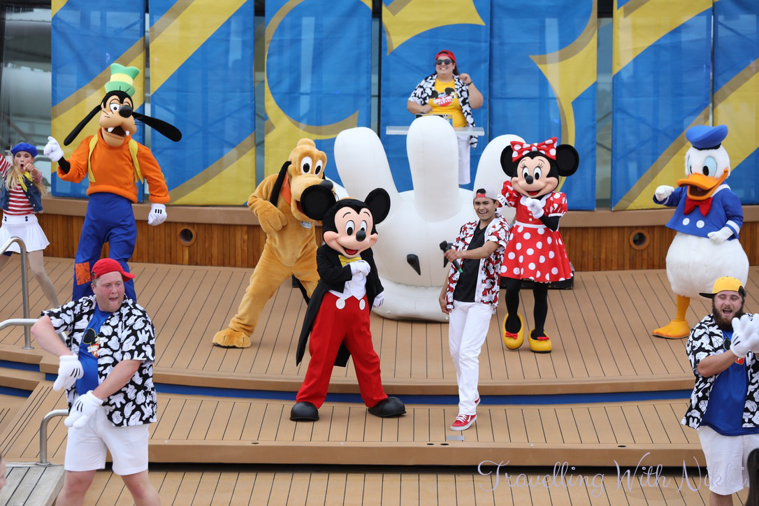 It was then time to say “goodbye to stress and hello to vacation” as Mickey’s Sail-A-Wave Party started. It was our first time seeing this sailaway party on the Disney Wonder as we had only seen the Adventures Away deck party before and this cruise was perfectly timed as these very much missed deck parties only restarted two weeks before we sailed – it was yet another time that I was convinced that this cruise was meant to be.