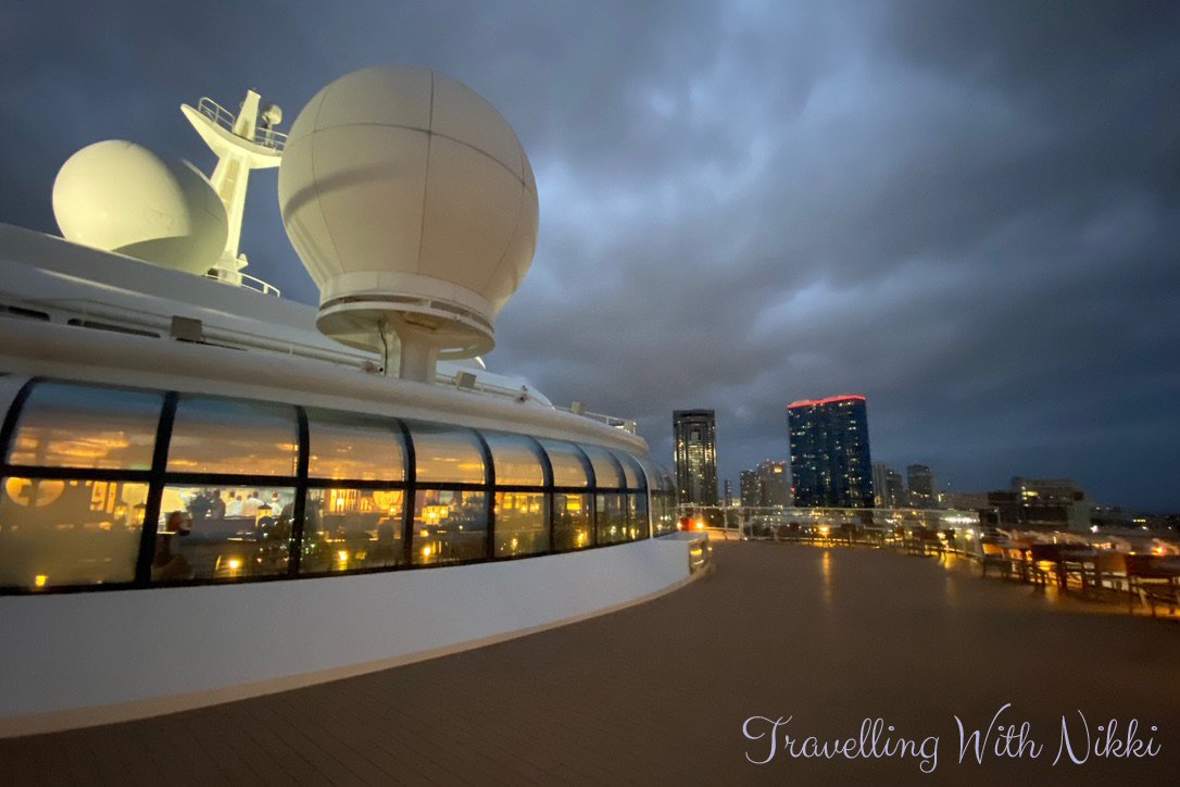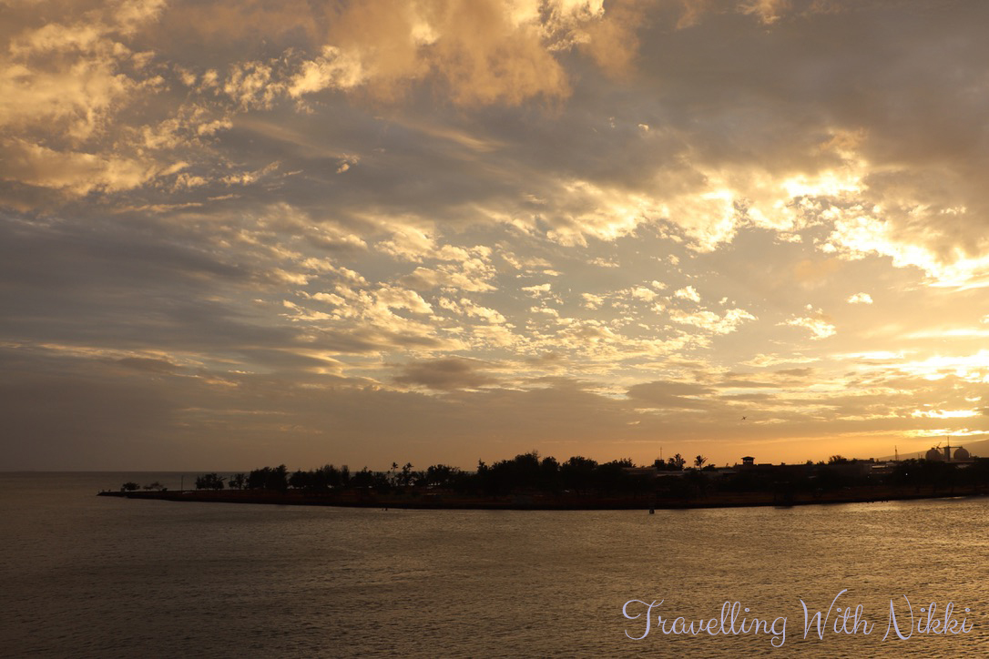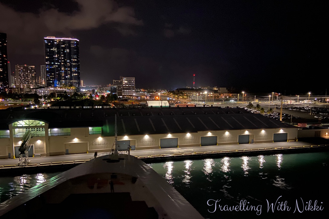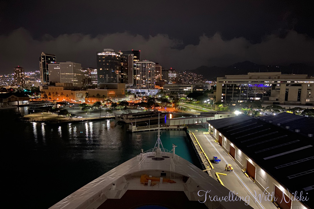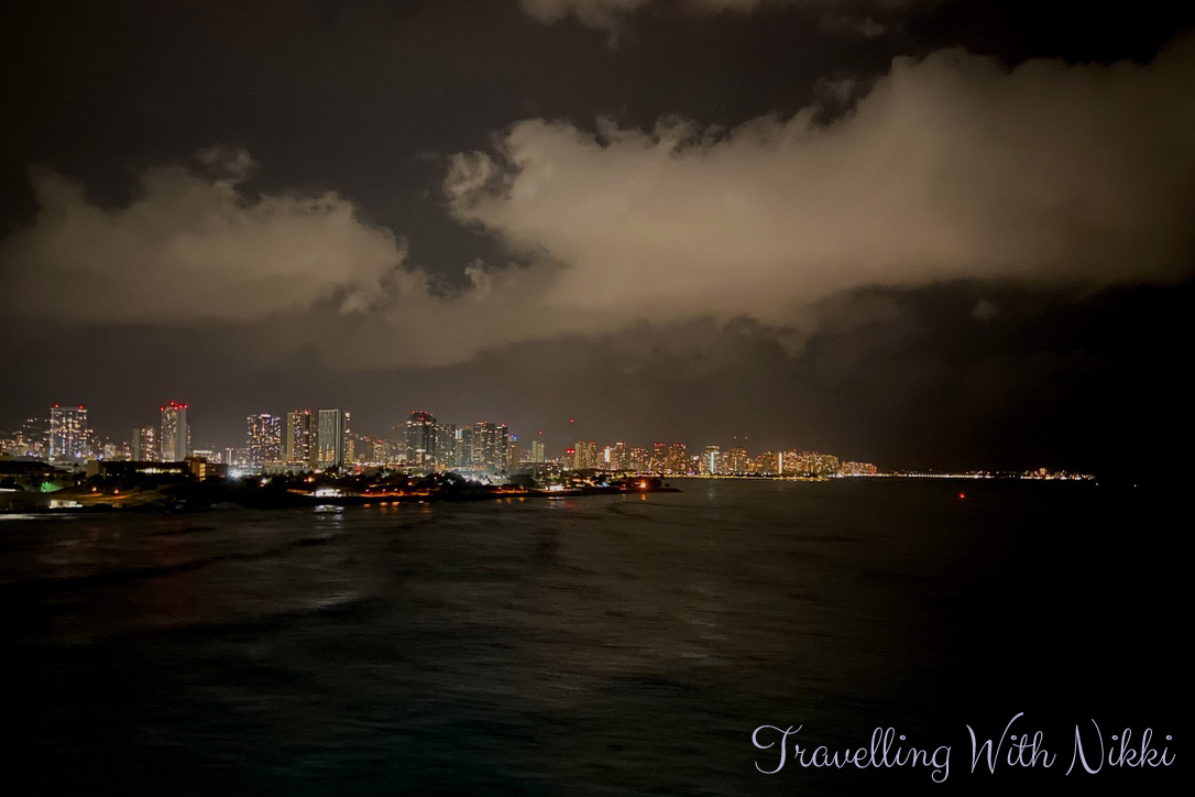 Once we had finished dinner, we made our way up to Deck 10 to watch our sailaway from Honolulu. The lines were released just after 10:00pm and we slowly turned around in the harbour before heading out to sea and towards the island of Maui. I had been looking forward to seeing Diamond Head at sunset as we sailed past but sadly as it was dark, there was not too much to see apart from the lights of Honolulu in the distance.