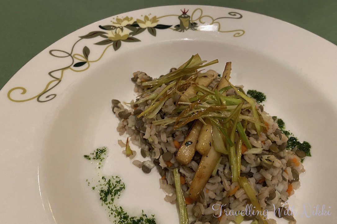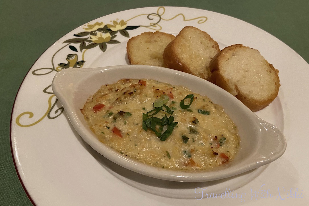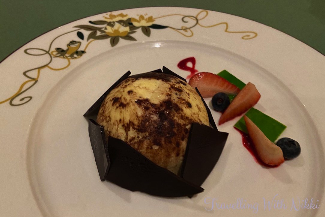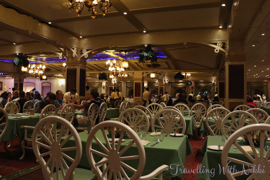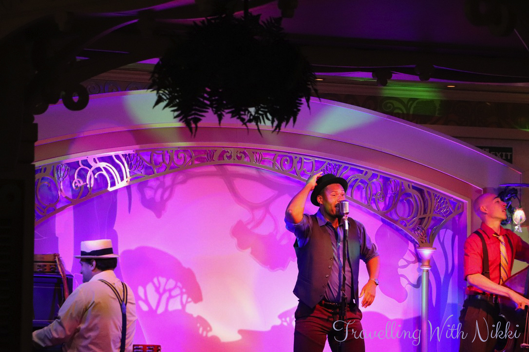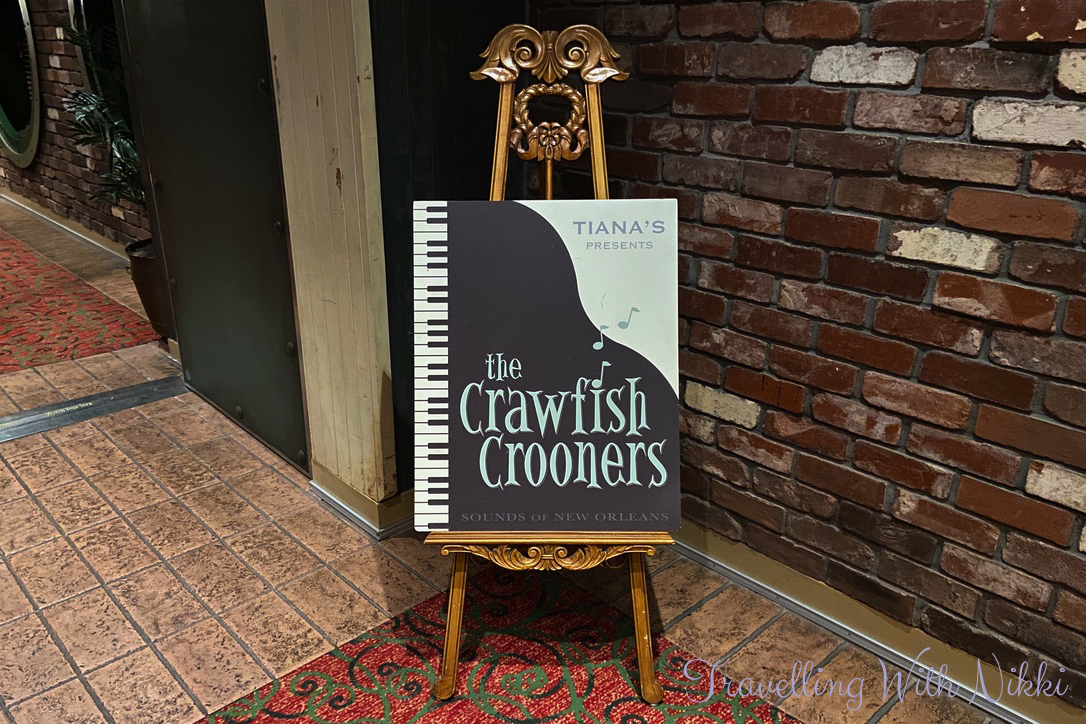 Our table was towards the back of the restaurant but with a clear view of the stage and just like on our last cruise on the Disney Wonder, I absolutely loved listening to the brilliant Crawfish Crooners during our dinner. However because of the current restrictions, Tiana stays on the stage and no longer walks between all of the tables talking to the guests during the meal.