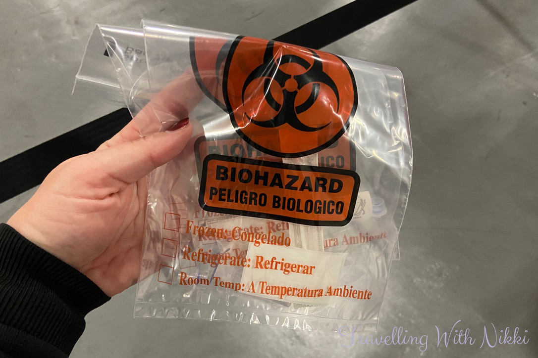 During this time we were also each handed a bag with our Covid test kits inside and as the line moved so quickly, it took less than five minutes to reach one of the testing tents. A member of the Inspire Diagnostics team checked our details (we had each created an account on the Safe Passage website fifteen days before our cruise where we had uploaded our proof of being fully vaccinated) and they then supervised both of us taking the test. As it was an antigen test, all we had to do was simply swab each nostril five times.