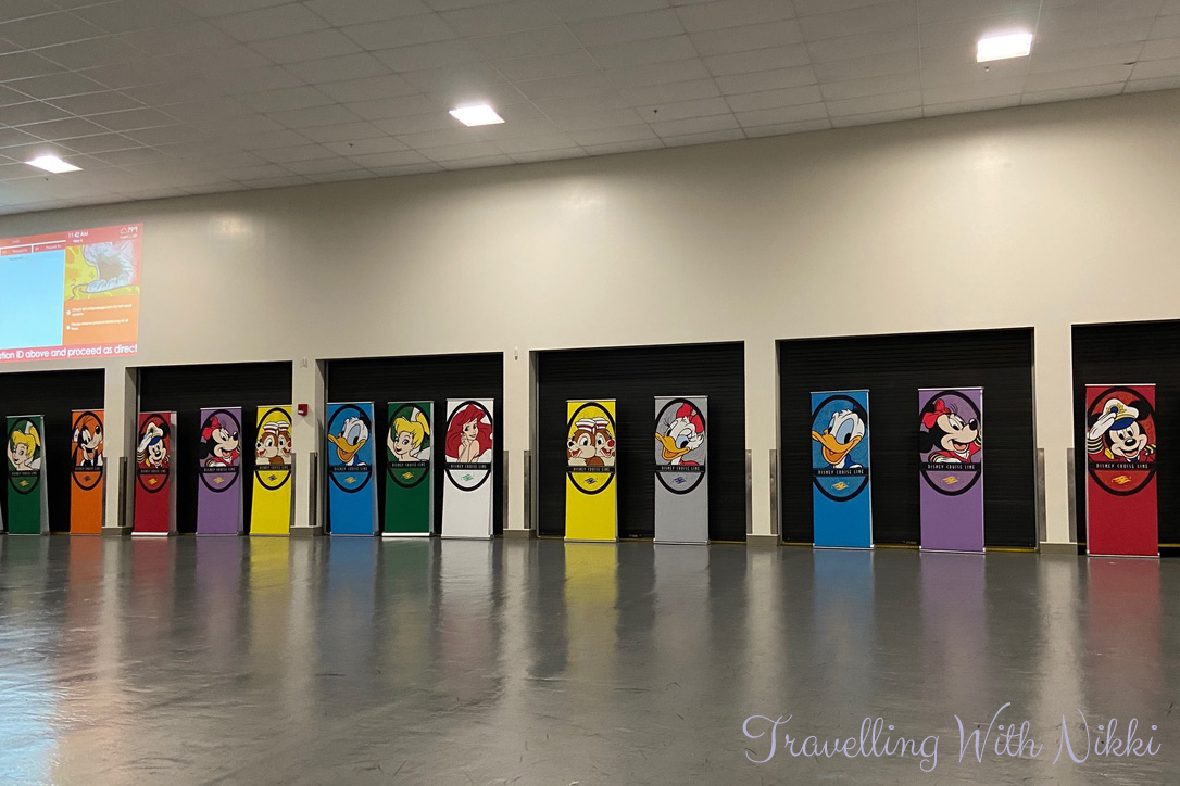 We took a seat in the waiting area and I tried to pass the time by taking photos of the different character banners in front of us. In my mind I hoped we would both be okay as we had both taken so many precautions in the weeks leading up to the cruise (we even wore masks on the flights to Los Angeles and Honolulu when we did not need to anymore as well as wearing them whilst indoors for the whole time we were in Hawaii that week as we did not want to be careless at the last minute) so at least we knew that we had done as much as we possibly could.