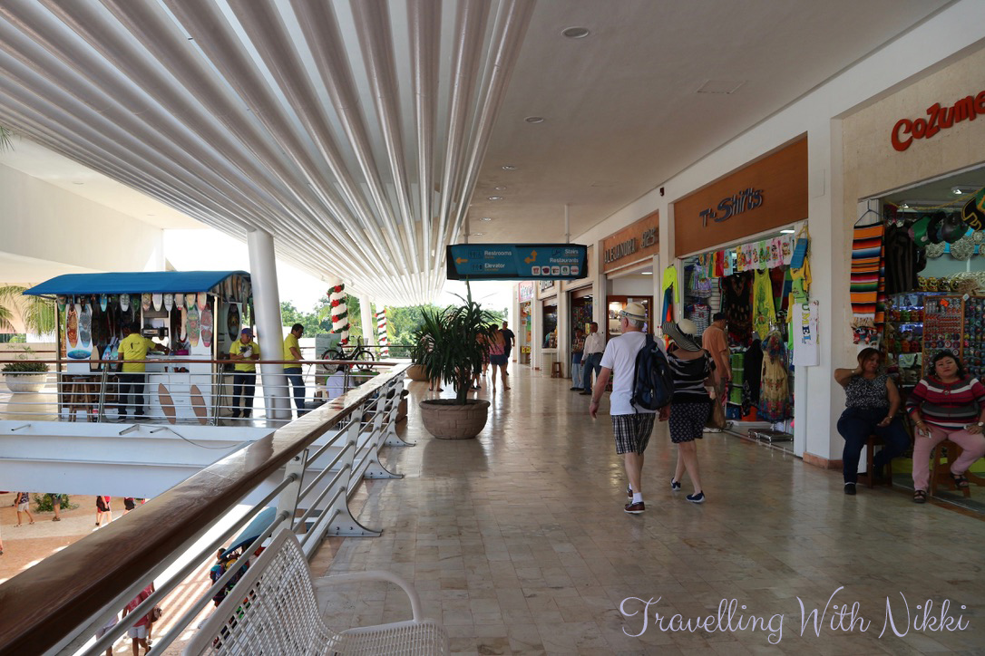 Once you get to the terminal building, you take an escalator upstairs before walking across a bridge into the Punta Langosta shopping mall where you will find stores selling every kind of tacky overpriced souvenir you could ever want (or not want) – they even had plenty of Mexican-themed Texas merchandise out so they knew that a ship from Galveston was in Cozumel that day!