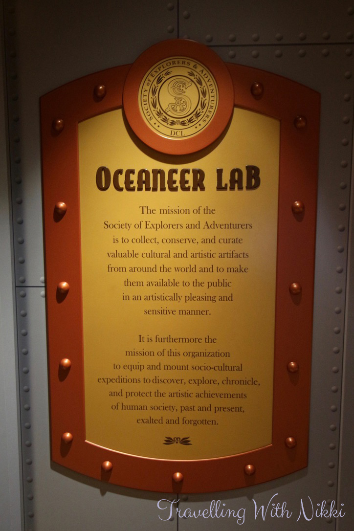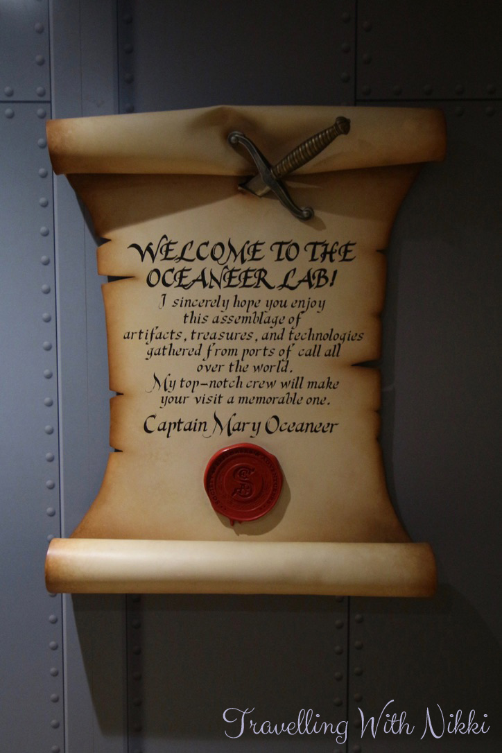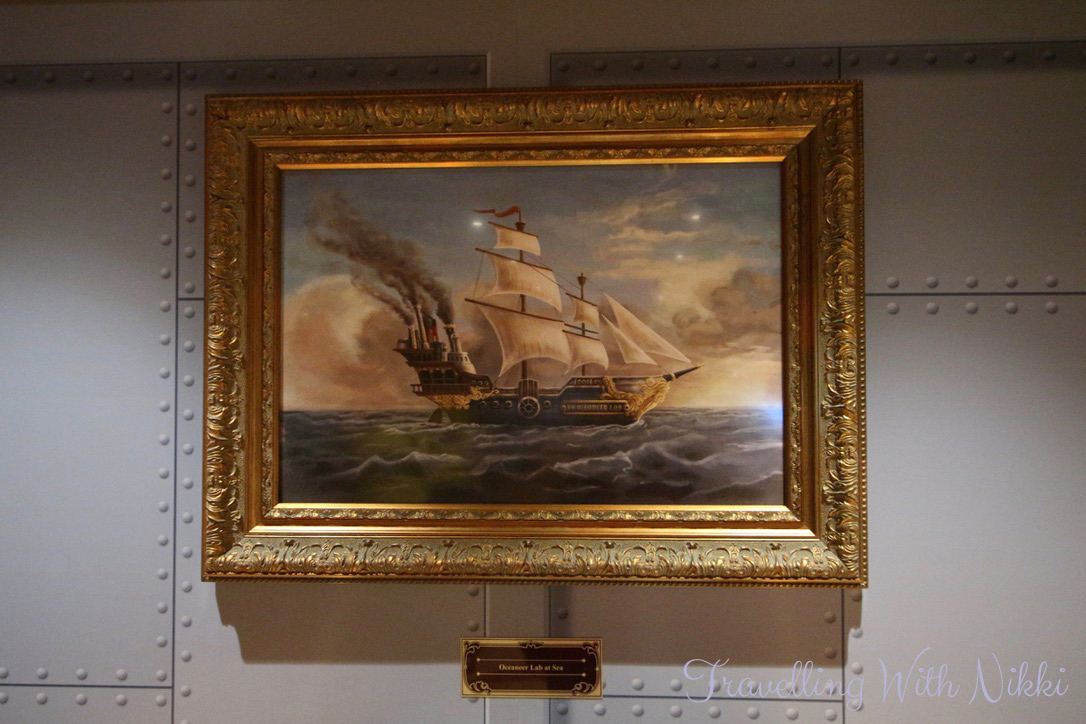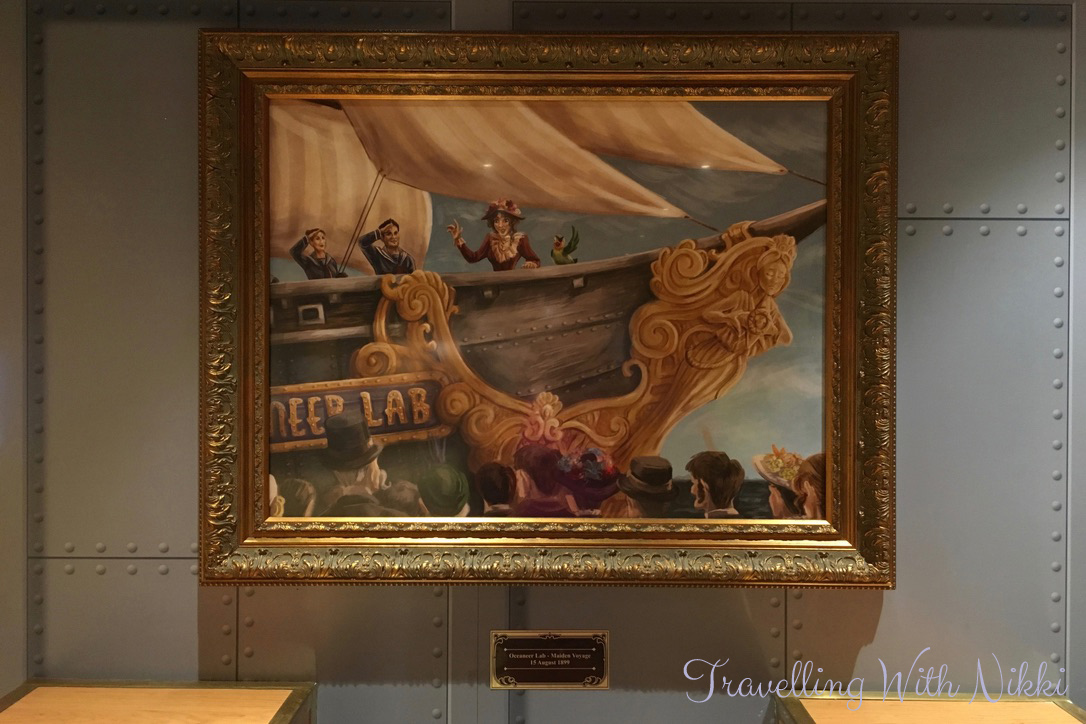 Around the lab are many pictures of Captain Mary Oceaneer and the adorable Salty the Parrot on their adventures sailing around the world including one of the “Inaugural Pirate Night” in 1898 (add 100 years to that date to make it 1998 which is when Disney Cruise Line first started sailing) and one of the “Maiden Voyage of the Oceaneer Lab” on the 15th August 1899 (again add 100 years and the maiden voyage of the Disney Wonder was 15th August 1999). I seriously cannot get enough of the details like this that Disney put into their parks and their ships.