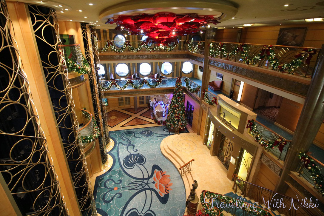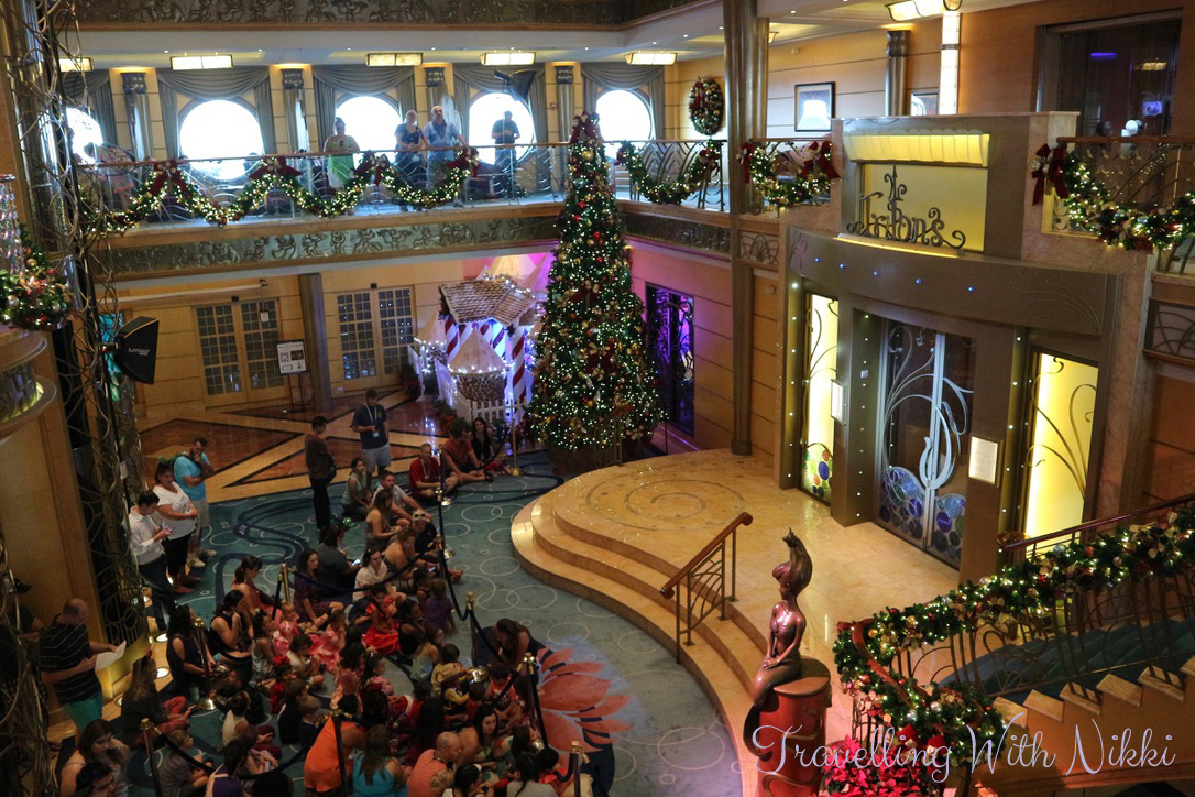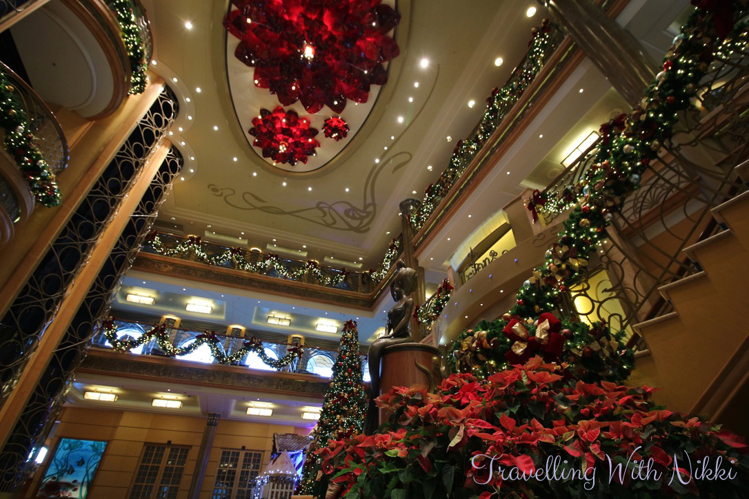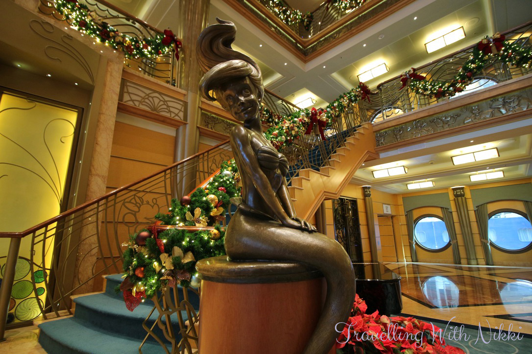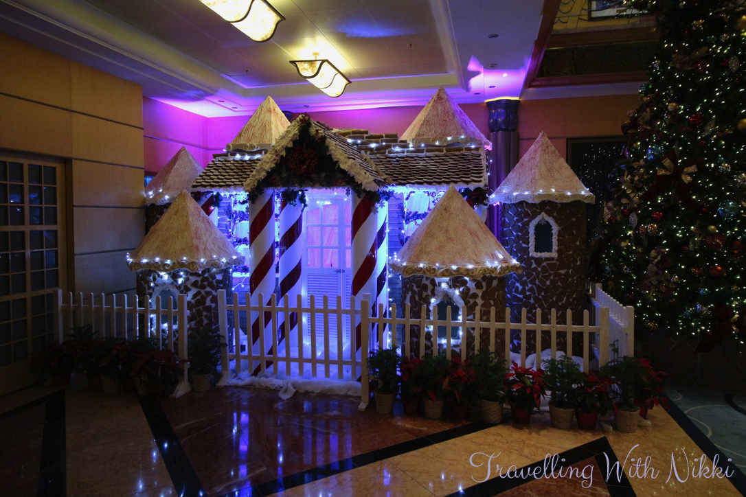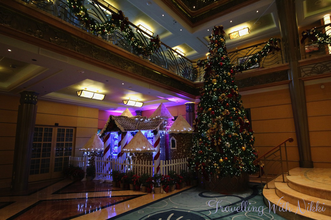 For me one of the best bits about the ship being empty was that I was able to get as many photos as I wanted of the beautiful lobby atrium, the gingerbread house and the rest of the Christmas decorations without anyone in them. They are some of my favourite photos I took during the cruise. Some people say that the ships are always busy and there’s always people everywhere and photos are difficult to get but I could not disagree more as easily proved here – I even managed to get photos of an empty lobby atrium on a sea day on a very busy cruise on the Disney Dream.
