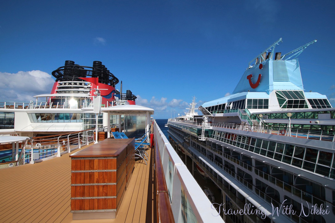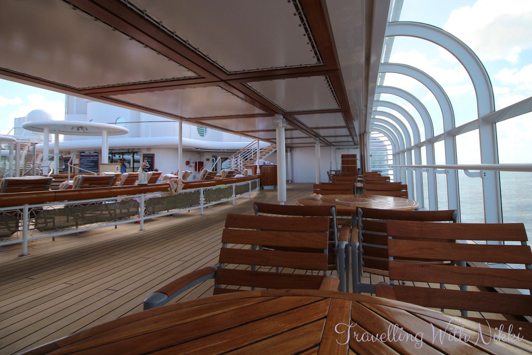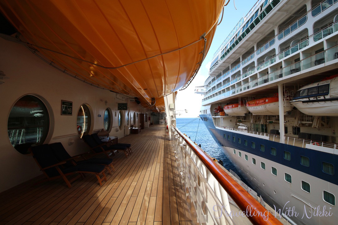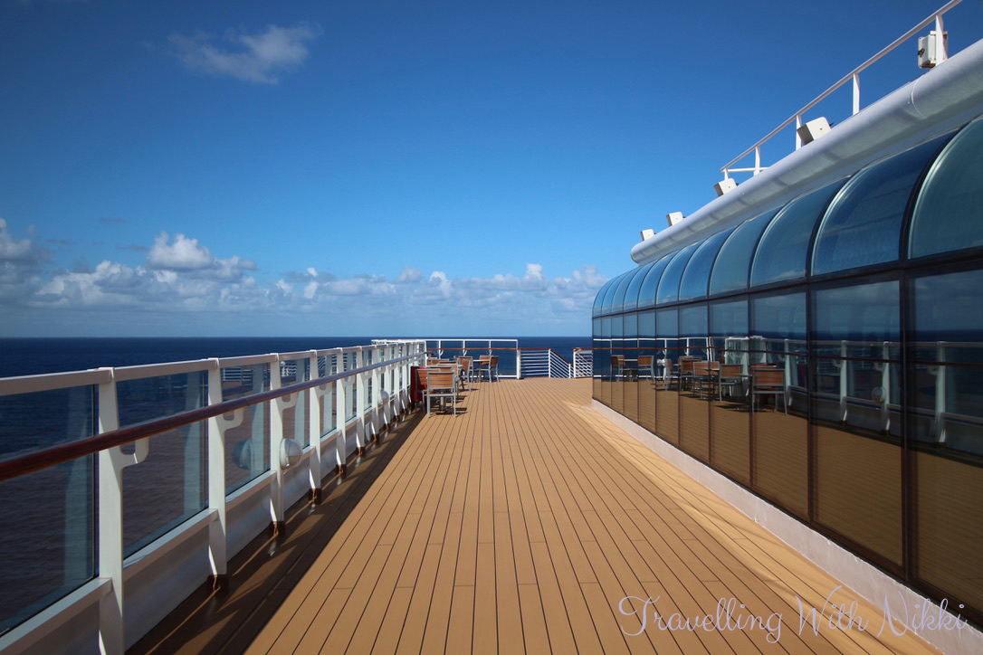 After I had finished my lunch, I walked some more around Decks 9 and 10. It was very sunny and it was starting to feel very humid. There were some people on the pier walking to and from the ships but not many and the Disney Wonder was still deserted. I was seriously loving how quiet it was – a day onboard an empty cruise ship is great.