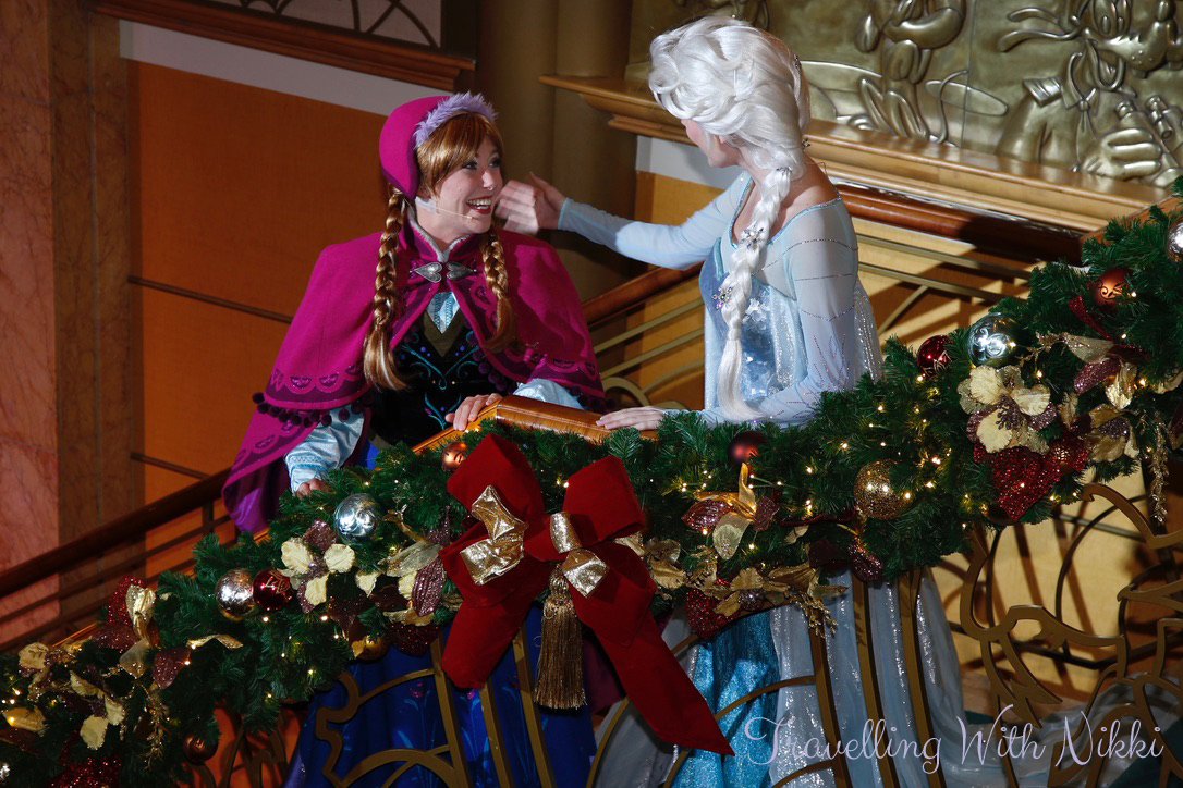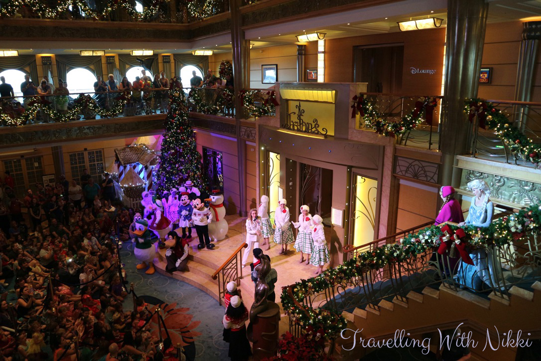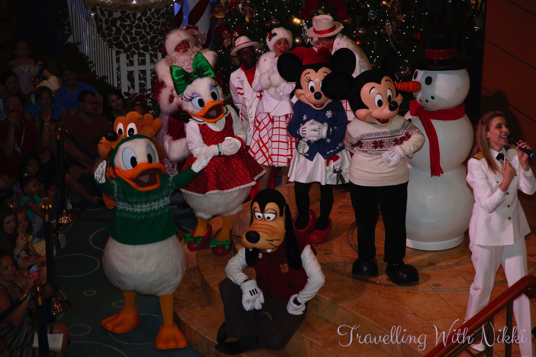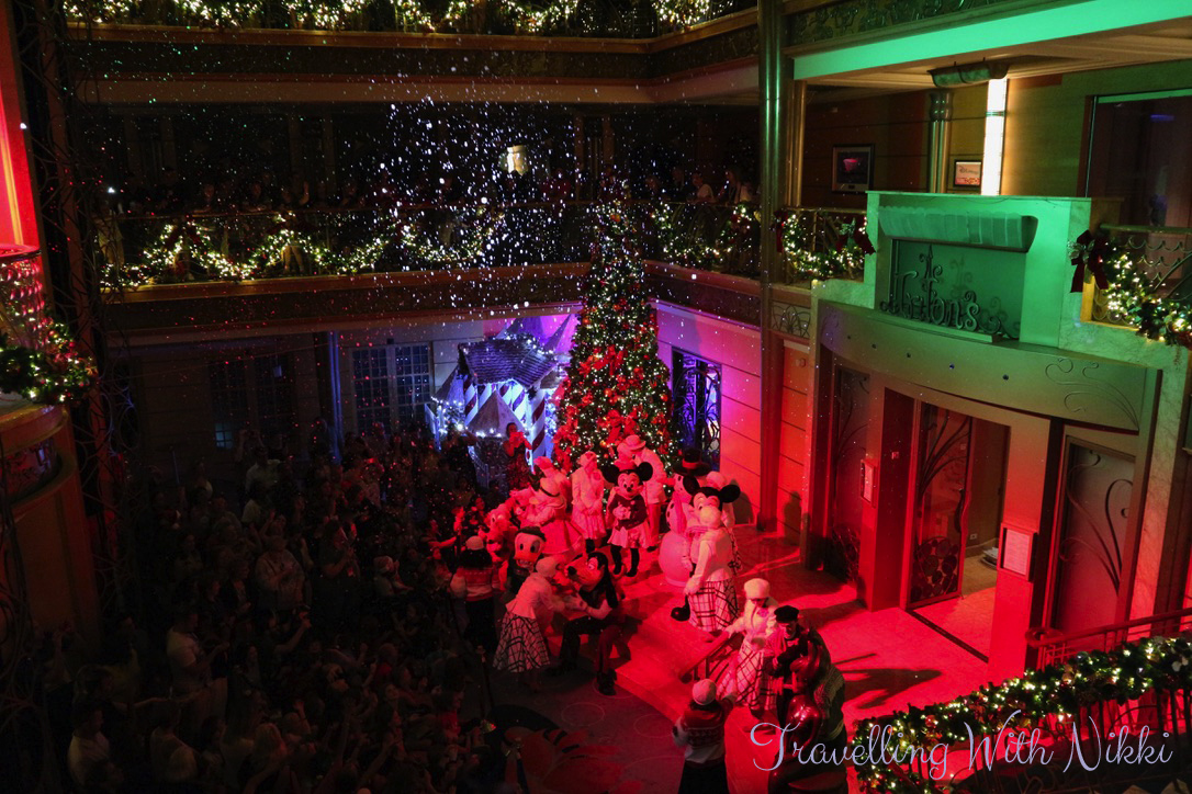 Mickey, Minnie, Pluto, Goofy, Donald and Daisy then arrived wearing their Christmas jumpers which were the costumes I was most excited about seeing on this cruise. Anna and Elsa then arrived before Elsa worked her magic powers and made it snow in the lobby atrium. The characters then stayed out for another twenty minutes so you could get photos with them but they were also going to be out for proper appearances during the evening so we were going to get our photos then as it was a little busy on Deck 3 at this time.