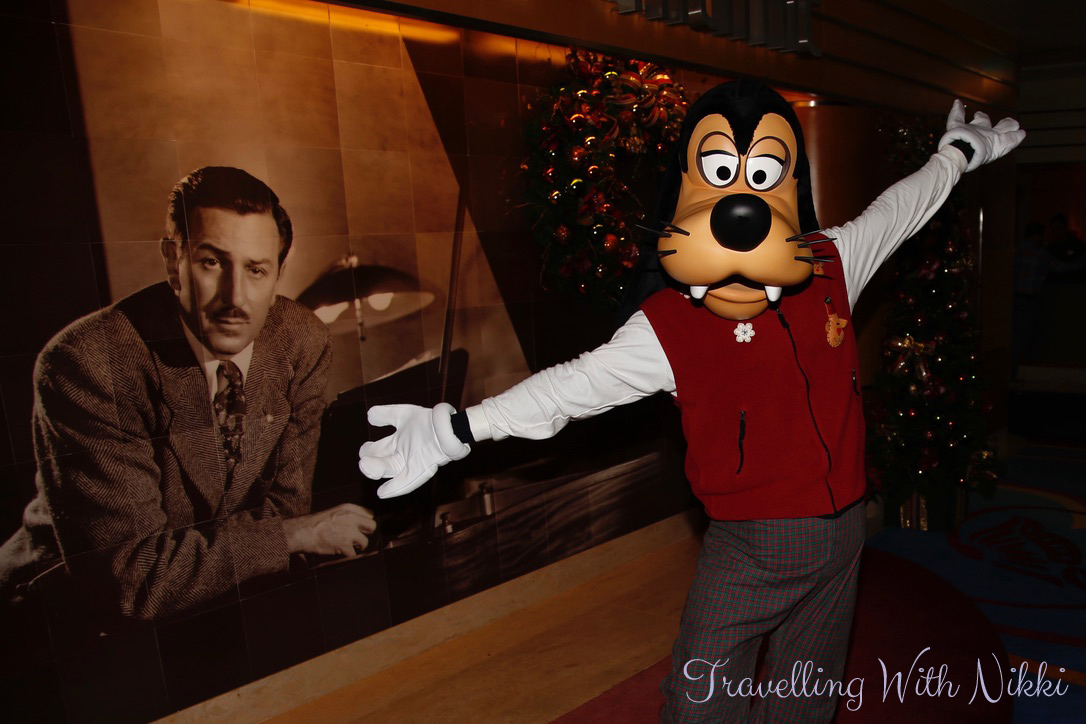 I loved meeting Minnie Mouse and her Christmas jumper was absolutely amazing. Just like a photo of her in her Alaskan costume a few years ago, it was a photo of Minnie in this outfit that had made me really want to book a Very Merrytime Cruise. After meeting Minnie, we walked to Preludes on Deck 4 where the line to meet Goofy was incredibly short so we only waited a few minutes. His Christmas outfit was adorable and I love that all my favourite character photos no matter where I am, are always with Goofy.