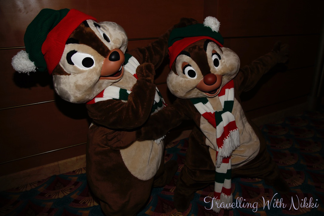 Our next characters of the evening were Chip and Dale who were scheduled to be out on Deck 5 at 7:15pm. Now if there was hardly any room to move just meeting one character on Deck 5, you can only begin to imagine what it was like with two chipmunks. Chip and Dale need room to mess around and be themselves and they just cannot do that on Deck 5. The photos only came out so-so and we made a mental note to see if they were meeting in a different place later on in the cruise.