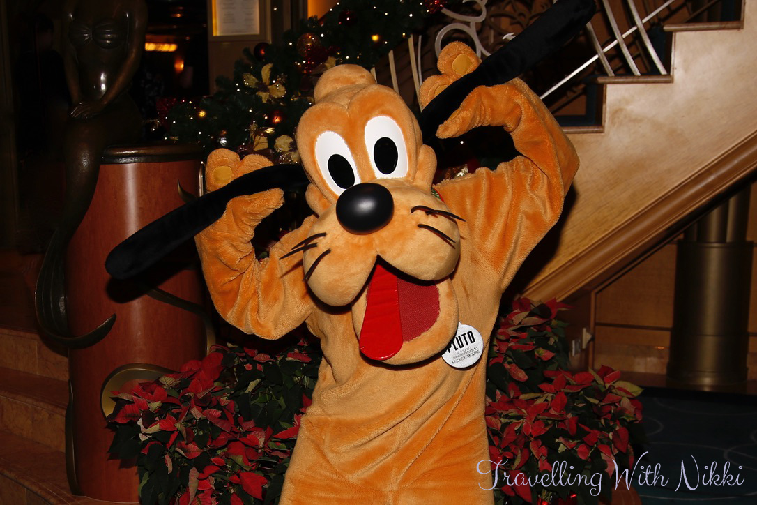 We made our way down to Deck 4 and we were close to the front of the line to meet Mickey who was due out 7:45pm. Our last character before dinner was Pluto who was on Deck 3 at 8:00pm. There was not a long line when we joined the queue and we even said hello to Captain Daniele as we were waiting.