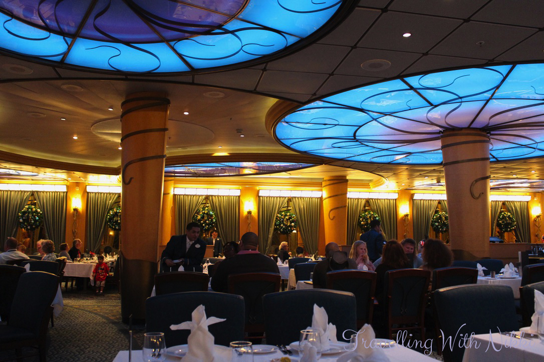 Our dinner on this evening was in Triton’s which was the only restaurant that did not seem to have changed at all since our last cruise on the Disney Wonder and once again, we had a really good table near the centre of the restaurant. I had a Ginger Ale to drink and for my starters, I ordered the Iced Lobster and Jumbo Shrimp as well as the Farmhouse Salad. One thing we had noticed on the previous nights but was even more prevalent on this night in the dining room was the number of people asking for tomato ketchup for everything they were eating – even the escargot!