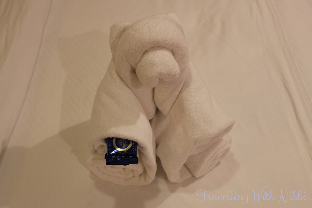 After making a cup of tea on Deck 9, we headed back to our stateroom. There was a show on in the Azure lounge but nothing sounds more cringeworthy than an “Adult Ventriloquist Comedy Show” which is how it was described. We had a towel bear waiting for us on our bed who already had hold of our Ghiradelli chocolates.