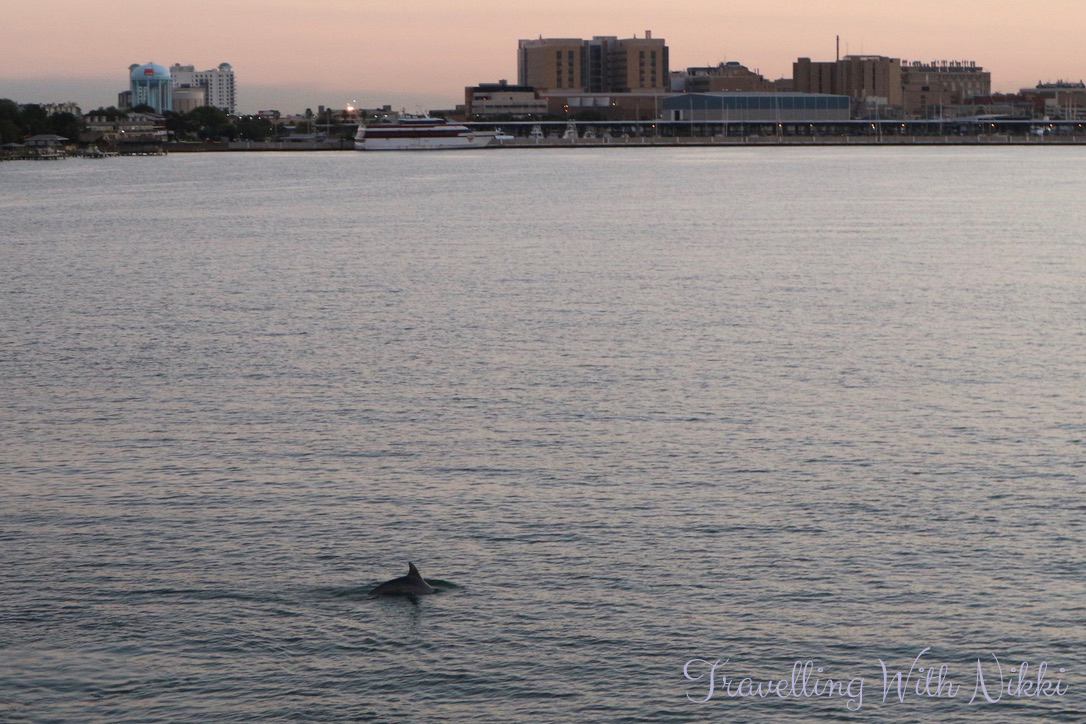 Just under two hours later, we arrived at the ferry dock and only had to wait a few minutes before they started boarding which was a case of absolutely brilliant timing. The 2.7 mile journey across the channel to Galveston Island takes 18 minutes and we were not only lucky enough to see dolphins all around us but the most beautiful sunset at the same time. Looking across the water towards the Port of Galveston was the moment where I finally relaxed after a few long days of travelling and I started to feel excited at the thought of boarding the Disney Wonder the following morning.