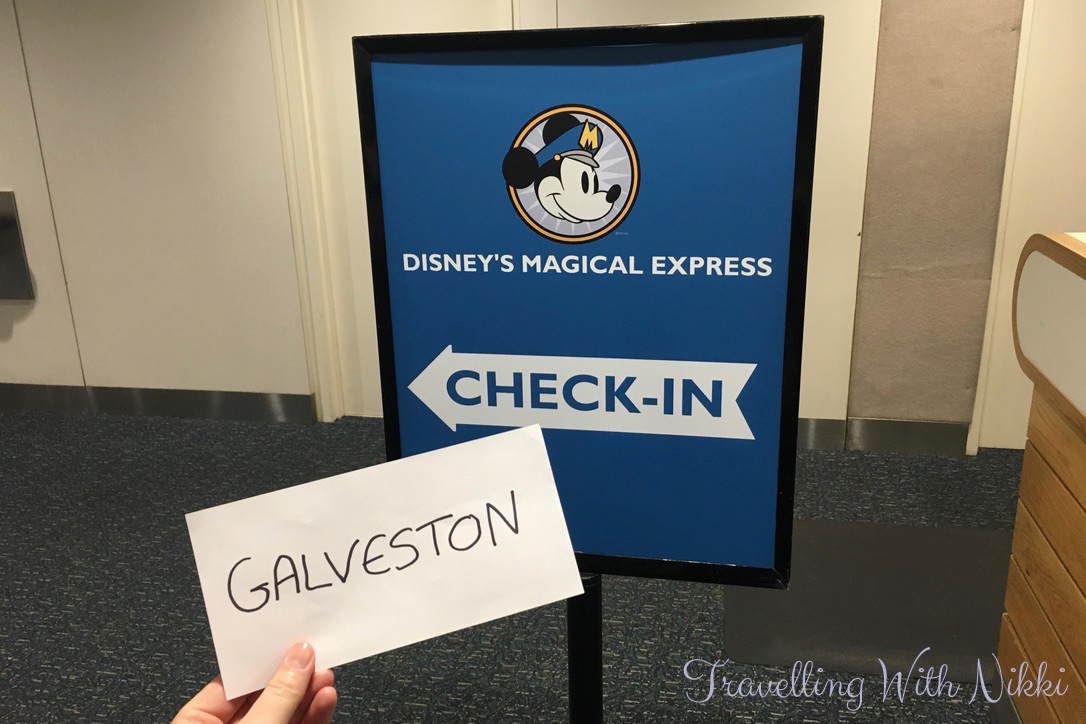 As it was still early, we could not go to bed yet so we decided to just wander around the terminal before getting something to eat. I had had an idea of a silly photo I wanted to try and get of one of us holding a sign saying “Galveston” by one of the Disney Cruise Line or Magical Express buses. It was too dark outside for the photo to come out well so we found a Magical Express sign inside which worked just as well. It did get us thinking though if people have turned up in Orlando Airport to try and get Disney transportation to Texas. It would not surprise me though as nothing surprises me after working with the general public for over twenty years!
