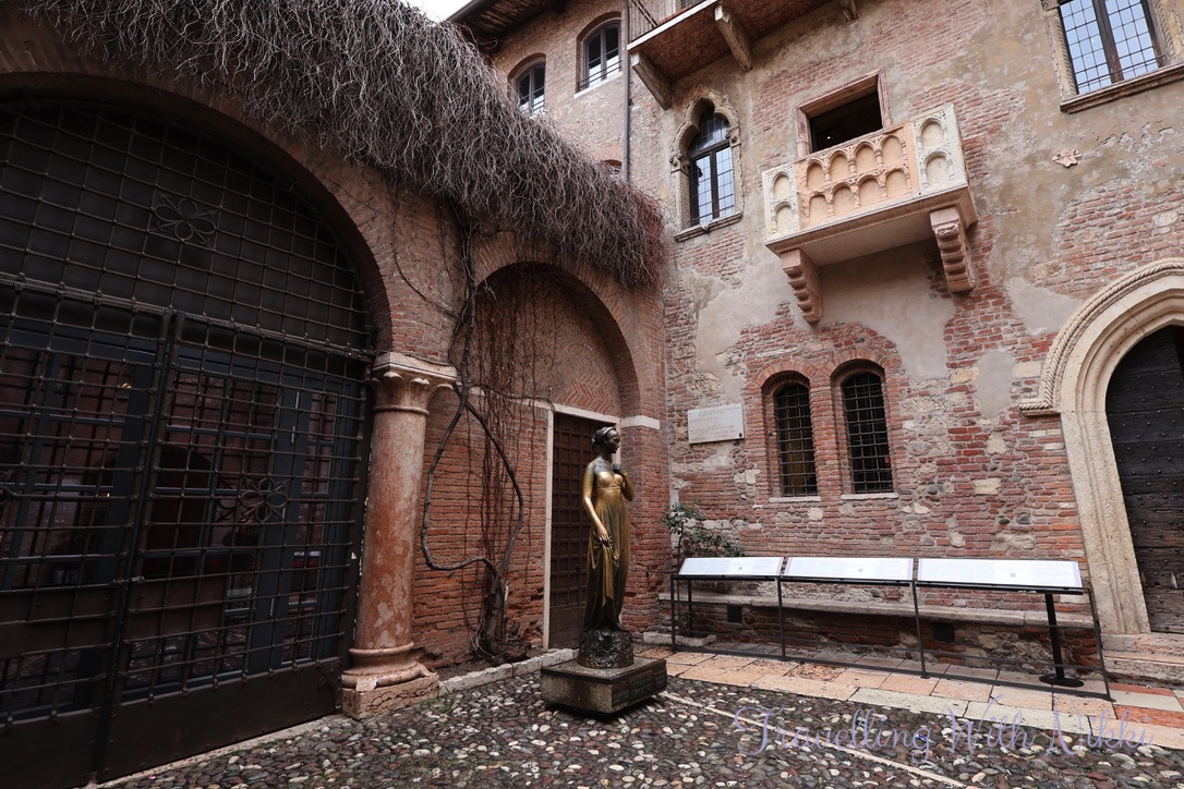 The courtyard where you can look up at the balcony is free of charge to visit (although it is not open on Mondays) and if you want to see it with no crowds (as it does get incredibly busy), be there for when the gates open in the morning as we were and you will have the place to yourself along with only a handful of others so you can get photos with no one else in them before heading off and exploring the rest of Verona.