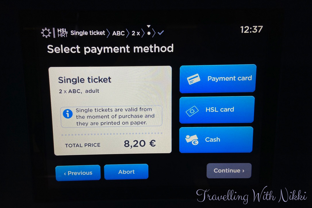 We used the machines on the platform to buy our train tickets when we arrived in Helsinki and the HSL App (we both downloaded it before travelling to Finland) to buy the tickets for our return journey a few days later. I have included full instructions of how to buy tickets using the HSL App later in this blog post.