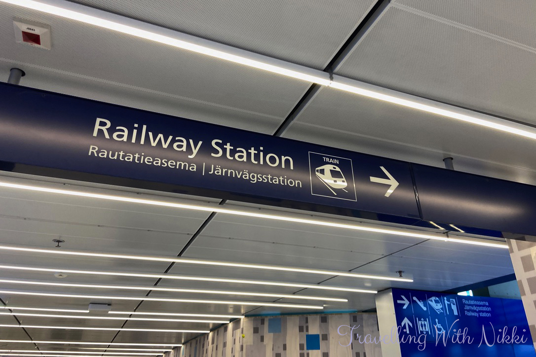Helsinki Vantaa Airport is located 20km from the centre of Helsinki and the airport train station is located underground between Terminals 1 and 2. After leaving baggage reclaim and customs, just follow the signs for Railway Station / Rautatieasema / Järnvägsstation and do not worry as the entire walk is inside so you do not need to go outside during the freezing cold winter months. You also do not need to worry about getting lost – it really is so simple and all of the signs are predominately in English (as well as in Finnish and Swedish) so it is impossible to go wrong.