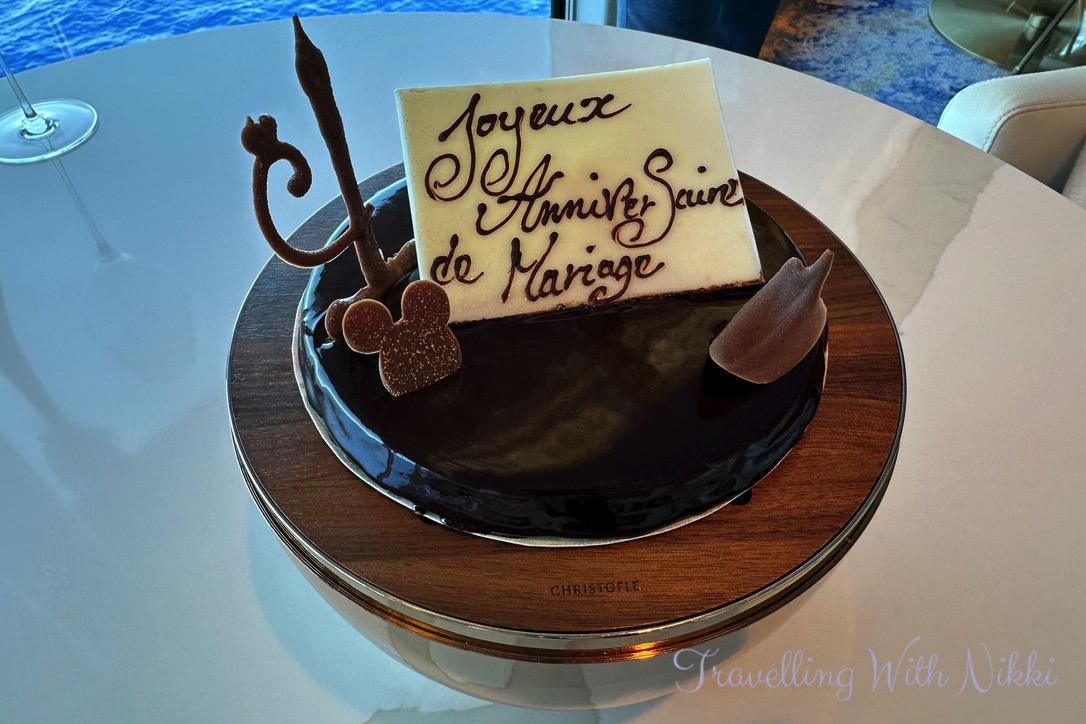 Our lunch lasted just over two and a half hours (this is an experience that you want to savour and not rush) and the time simply flew by and I did not want it to end – it really was nothing short of perfect. I loved having lunch instead of dinner at Enchanté as I found it to be very relaxed, the views outside were beautiful in the sunshine (compared to in the evening when you cannot see anything except your own reflection in the windows) and I loved that I was not finishing an amazing meal late at night and going straight to bed with a belly full of food – we could simply continue enjoying the rest of our day onboard the beautiful Disney Treasure instead.