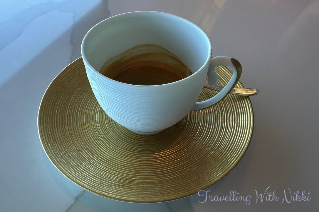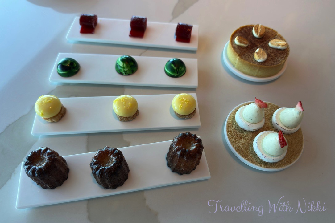 Another difference from our brunch on the Disney Dream was the full selection of mignardises (also known as even more food!) was served at the end of our lunch at Enchanté to finish our meal. The selection included a beautiful coffee and praline tartlet, some amazing Canelé (which I had loved on the Disney Dream), lemon curd shortbread that was simply delicious as well as strawberry and vanilla pavlovas, raspberry pâte de fruits and mint chocolate bonbons which all went perfectly with the double espresso that I ordered.