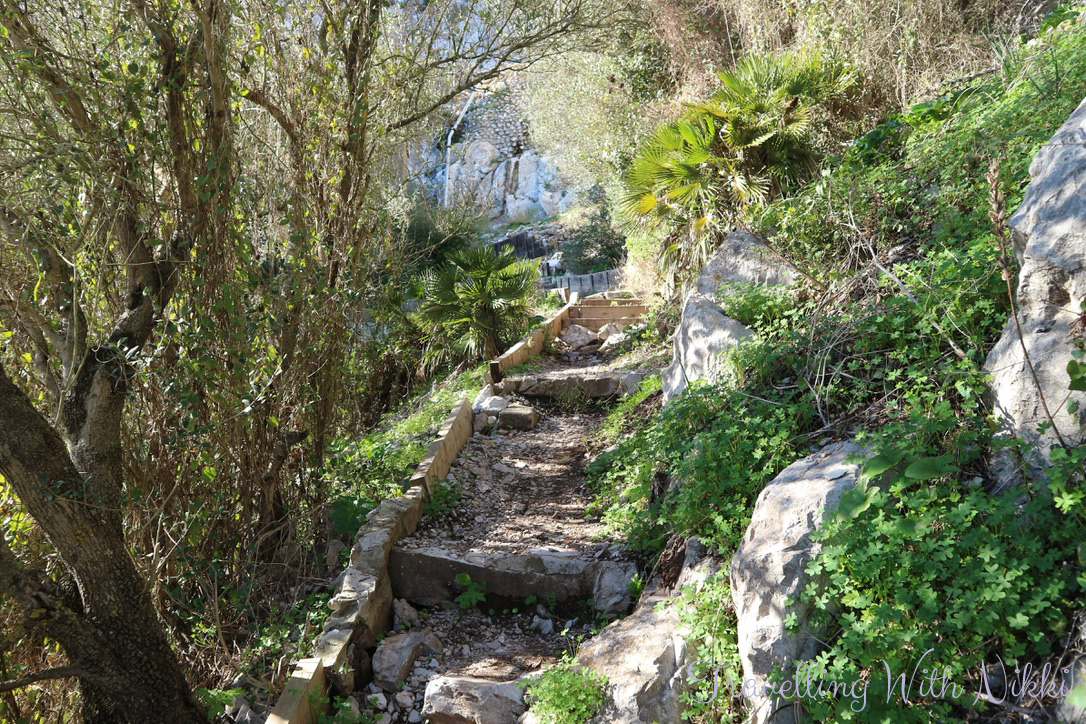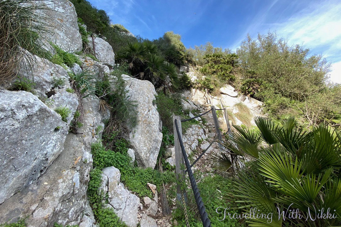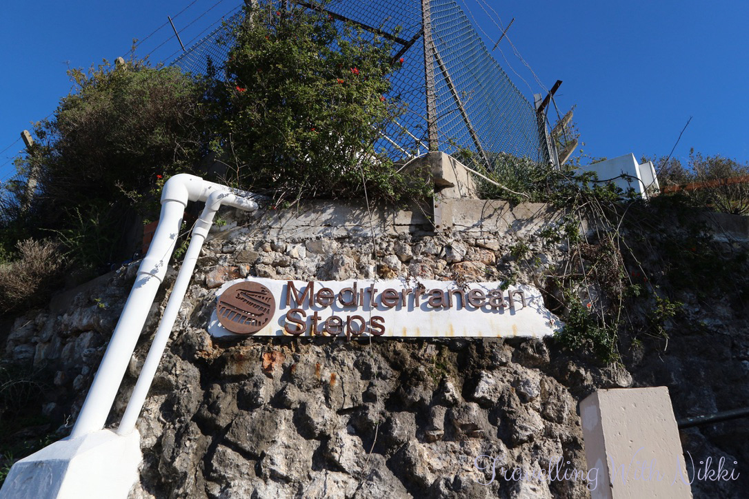 After getting our wristbands and being grateful that we had already decided to walk as the cable car was not operating that morning (there were some very disappointed people at the ticket office), we carried on walking along Europa Road past The Rock Hotel and along Engineer Road to enter the Nature Reserve. Parts of the walk reminded me a lot of being back in Hong Kong and the paths whilst walking up to the Peak. The starting point for the Mediterranean Steps is located next to the Pillars of Hercules.