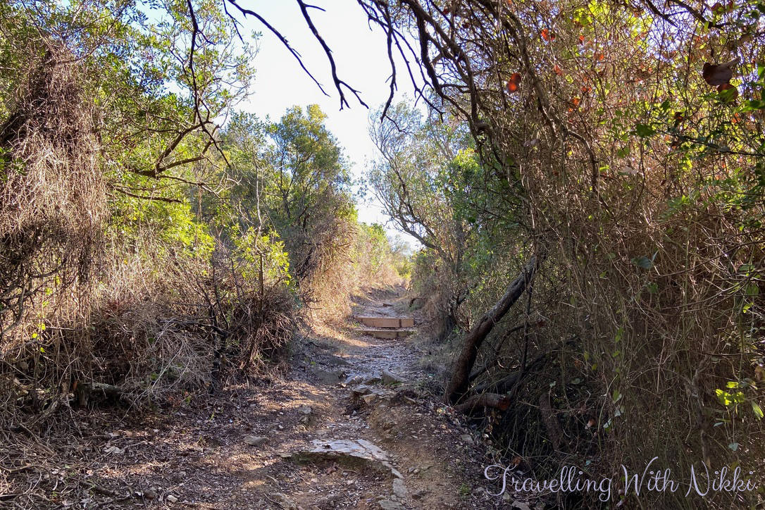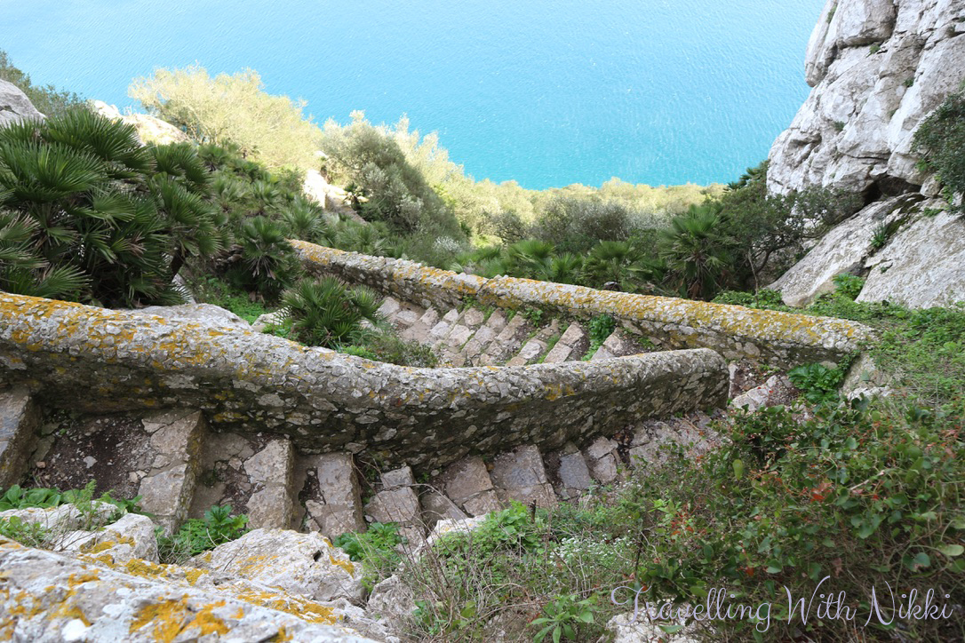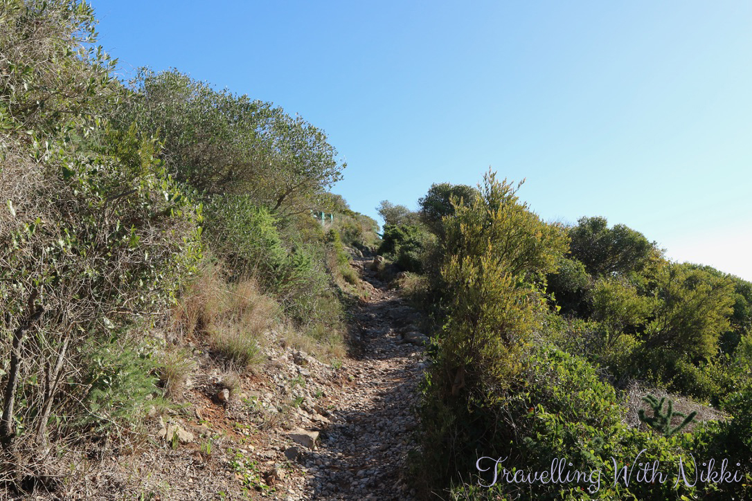 The walk from leaving our hotel to arriving at the Pillars of Hercules took fifty minutes and once there, you can find toilets as well as another office where you can buy tickets for the Nature Reserve – we had been unsure if it was open or not when we visited hence why we stopped at the Cable Car lower station on the way. The start of the Mediterranean Steps is clearly signposted and once at the top of the short set of stairs leading up from the road, make sure to turn RIGHT to begin the hike.