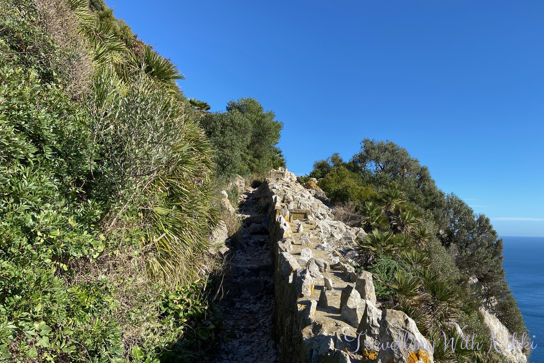 The next section of the climb involves both steps as well as several flat sections which are very welcome. Once you are on the Mediterranean Steps trail, it is impossible to take a wrong turn as you just have to keep following the path.