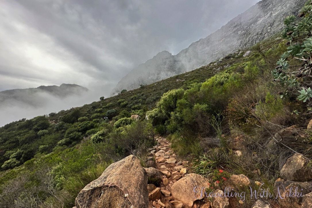 Even though I was constantly walking in and out of the clouds (or the Tablecloth as it is more commonly known in Cape Town) the views of the mountain as well as the city below when I could see it were beautiful.