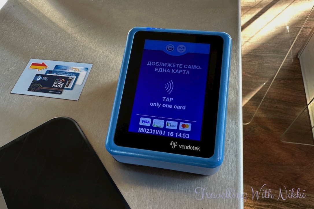 However the most straightforward way to pay for your ticket (which we did) from Sofia Airport into the city centre is to simply tap your credit or debit card (one card per person) on the reader at the top of the turnstiles as the Metro system can now be used completely contactless which makes everything so quick and easy. Both Visa and Mastercard can be used (along with Apple Pay and Google Pay) however American Express is not accepted. By using your contactless card to pay, you will also be able to transfer from the Metro to the bus or tram within thirty minutes of the initial validation – this is called a “Ticket 30+” ticket.