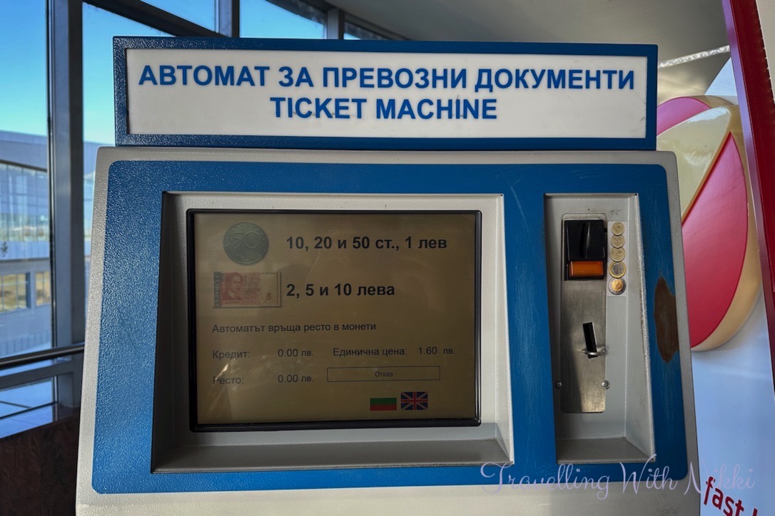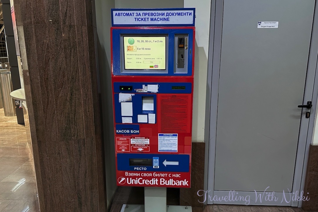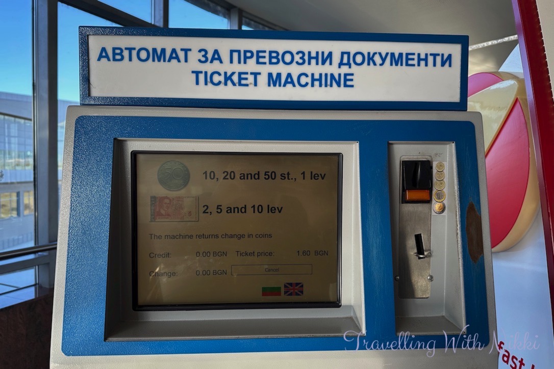 As you enter the station there are a total of two ticket machines which only accept cash (one of them did accept cards for a few years) and you can also find an ATM next to one of them if needed. If you wish to pay by cash and the ticket machines are broken (which they were when we landed in Sofia), there is also a ticket office in the station where you can pay cash. The machines can be used in both Bulgarian as well as in English and no other instructions are needed as you simply put your money into the machine as only one type of ticket is available – it will also say on the screen which coins and notes are currently being accepted. Tickets issued from the machines at the airport are “Single Tickets” which are only valid on the Sofia Metro and cannot be used to transfer onto the buses or trams in the city.