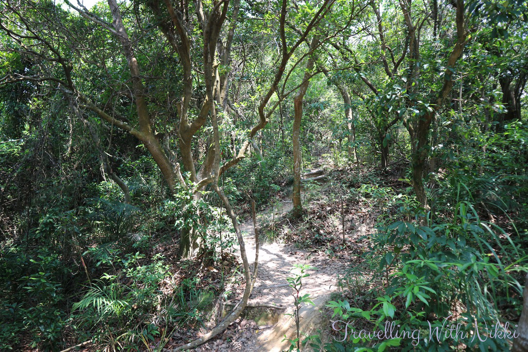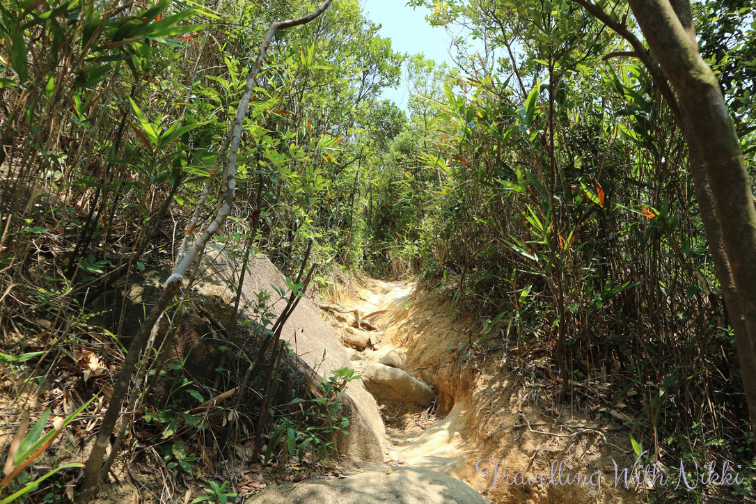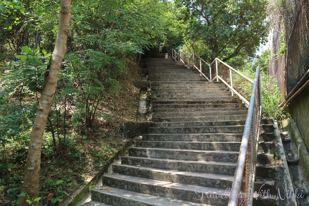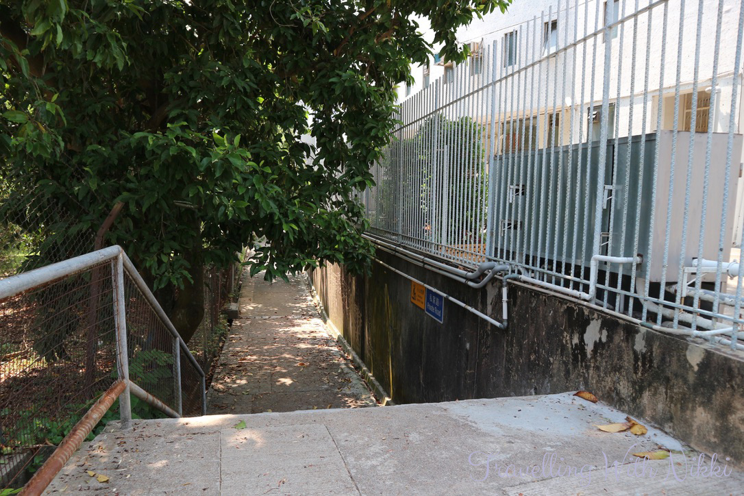 The bus journey from Causeway Bay to Braemar Hill Bus Terminus should take between ten to fifteen minutes depending on traffic. Once you get off the bus, cross the road and to the left of the school you’ll see some steps leading down to a pathway. Follow this path behind the school which will lead to a much larger set of stairs heading up.
