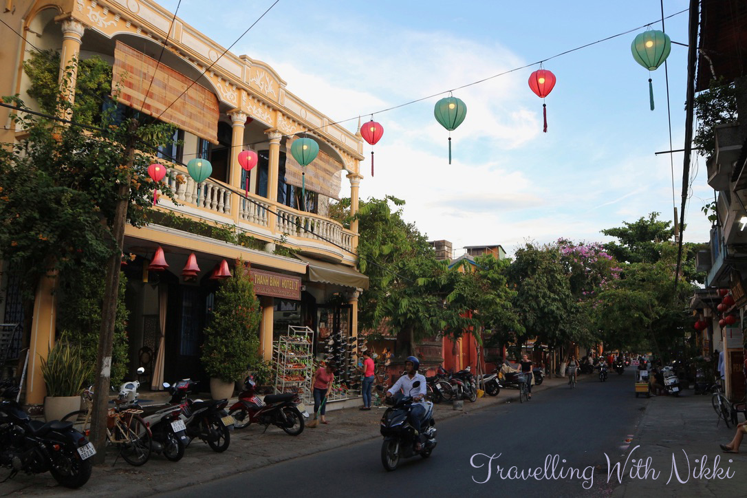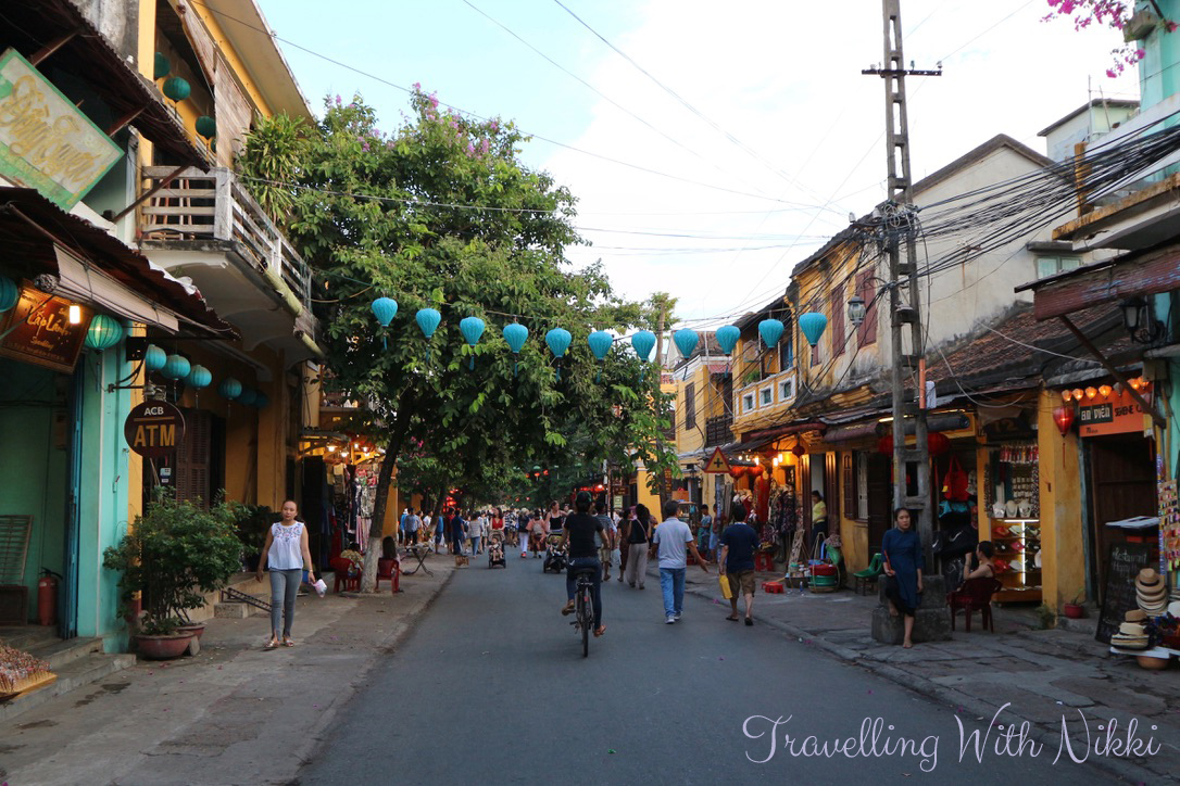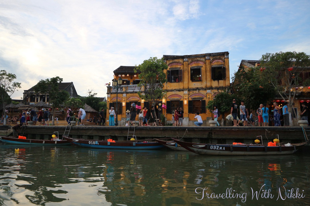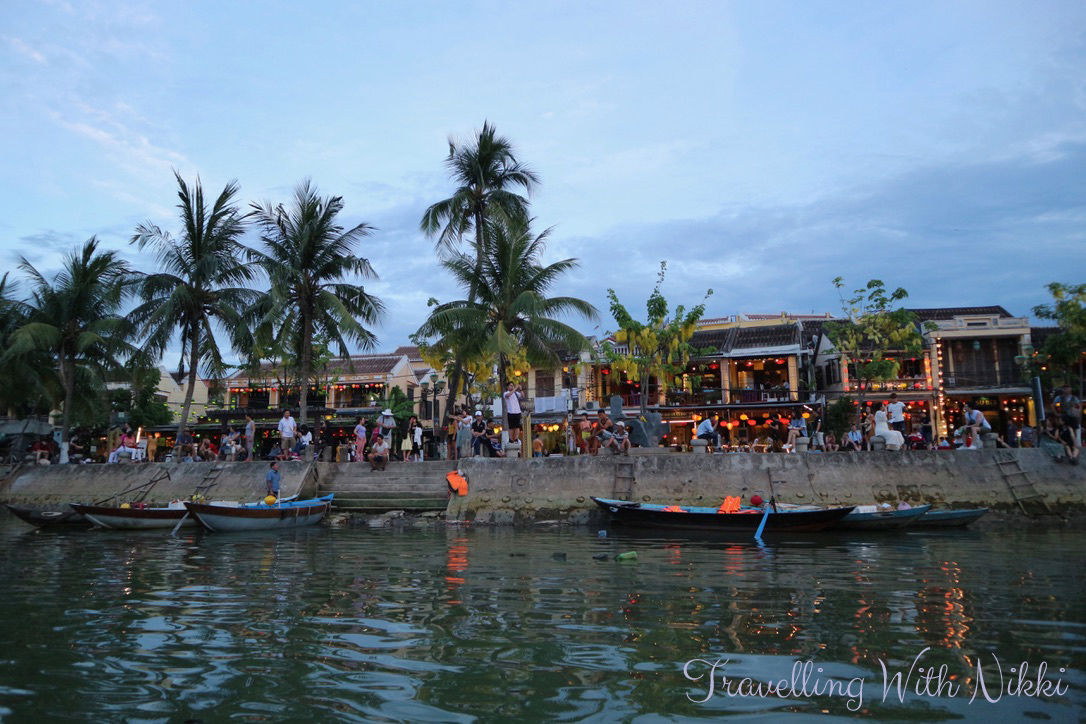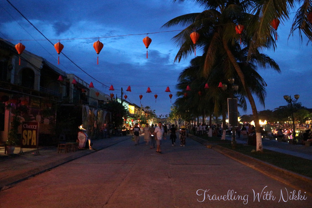 As the sun was setting, the lights of the town were starting to be turned off – we even watched as one official walked along and told each business which lights they needed to switch off. Even all the colourful lanterns that hang across all the streets are turned off on Full Moon night so if you want to get photos of these, you will need to visit again on a different evening. Thankfully we already had these photos as we spent three nights out of our five night stay in Hoi An itself wandering around the old town eating amazing food.