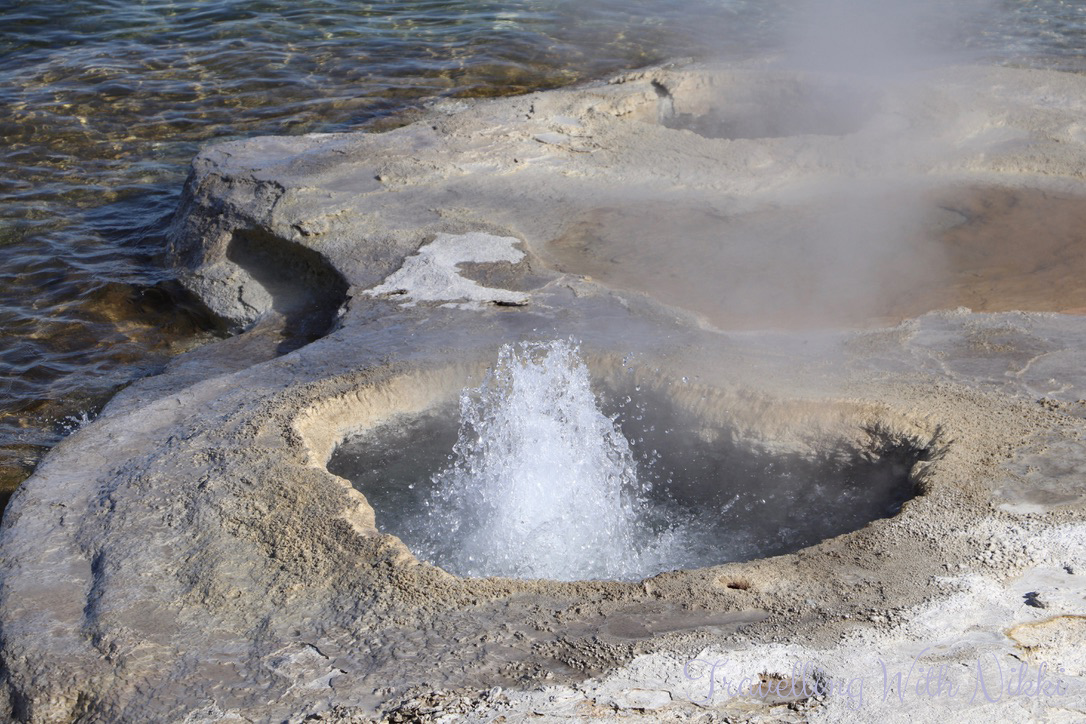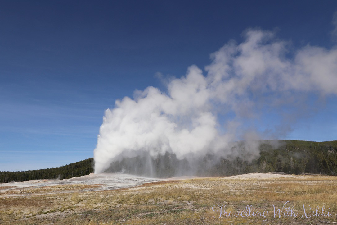 If you want front row seats to watch Old Faithful, you can check the NPS Twitter Feed for predicted eruption times and they are also on display in the Visitor Center. Arrive in good time (at least an hour before) and bring drinks and snacks and sit and wait – it is worth it.