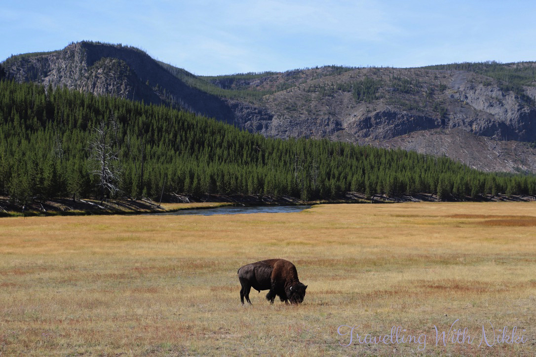 We personally stayed in a hotel in West Yellowstone which was a fantastic base for our stay as it was right outside the West Entrance. Not only was our accommodation a lot cheaper than if we had stayed inside the park but we also saved money by eating at the restaurants in the town (the menu options were a hundred times better than anything I saw inside the park especially if you have various dietary requirements) as well as having access to supermarkets and cheaper fuel. Yes we got caught in a Bison Jam each day between West Yellowstone and Madison Junction but it was all part of the fun of going to Yellowstone.